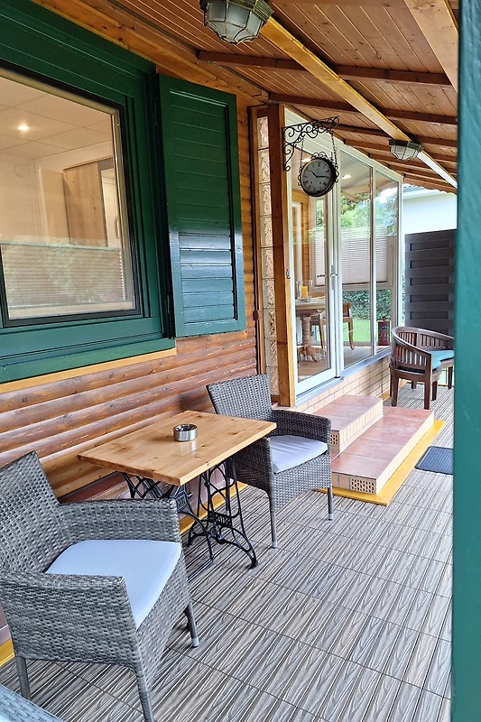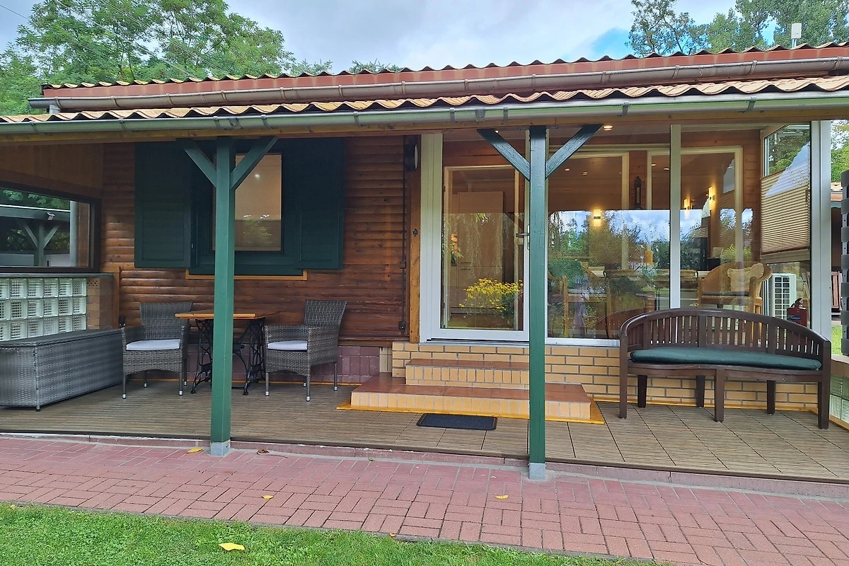 Das Haus steht auf einem 1000 m² großem Grundstück,welches Ihnen komplett zur Verfügung verfügt über ein Wohnzimmer mit Ausziehcouch,1 Schlafzimmer mit 2 Betten zusammenschiebbar,eine komplett ausgestatte Küche und 1 Freien gibt es eine überdachte Terrasse,einen überdachten Grillplatz und einen PKW Stellplatz auf dem Grundstü und ein Sitzplatz am Teich stehen ebenfalls für Sie bereit.