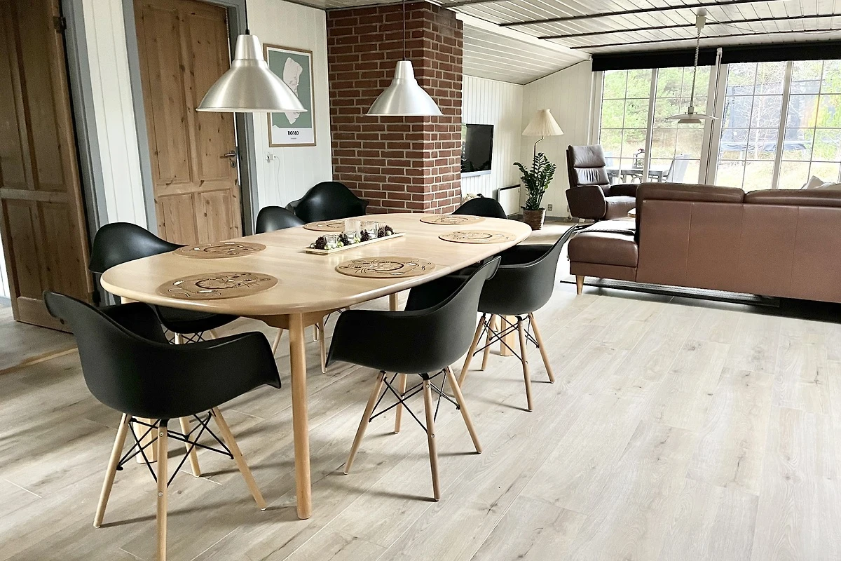 Grosen Naturgrundstück von 2500 m2 grenzt an einer Düne, mit einem Abstand von 1500 Meter zum Kaufmann, 1200 Meter zum Restaurant und 1200 Meter zur Küste/strand. Die Insel Rømø liegt direkt nördlich von Sylt im Wattenmeer und ist von Skaerbaek über einen 10 km langen Damm mit dem Auto zu erreichen. Die Westküste von Rømø ist ein einziger riesiger Strand – der breiteste Nordeuropas – und deshalb auch größtenteils mit dem Auto befahrbar. Die Orte befinden sich auf der Ostseite, die Entfernungen zum Strand sind aufgrund der geringen Größe der Insel jedoch gering. Das Ferienhausgebiet Toftum liegt im Norden der Insel eingebettet in hügelige Heidegebiete. Die Ferienhäuser und Ferienwohnungen sind weitläufig in der schönen Landschaft verteilt und über Schotterwege erreichbar. Einkaufsmöglichkeiten gibt es im ca. 4 km entfernten Kongsmark und im großen Einkaufszentrum in Lakolk, dem einzigen Ort auf Rømøs Westseite. Nördlich von Toftum gibt es eine Pferdepension und einen Angelsee, in Kongsmark ein interessantes Naturcenter. In und bei Havneby, der Hafenstadt im Süden Rømøs, befinden sich verschiedene Freizeiteinrichtungen wie ein Vergnügungspark mit Erlebnisbad, Reiterhof, Golfplatz, ein großes Wellness-Center, ein Anbieter von Kajaktouren und ein Surfcenter mit Verleih von Kitebuggys u.ä. Von Havneby aus kann man auch mit der Fähre einen Ausflug nach Sylt unternehmen. Die nächste größere Stadt ist Skaerbaek auf dem Festland, von Toftum aus ca. 16 km entfernt