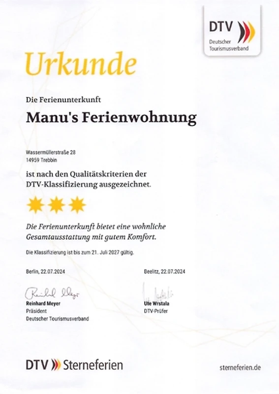 «Manu's Ferienwohnung ***» erreicht eine Urlauberbewertung von 5 (Bewertungsskala: 1 bis 5) bei 1 abgegebenen Bewertung.