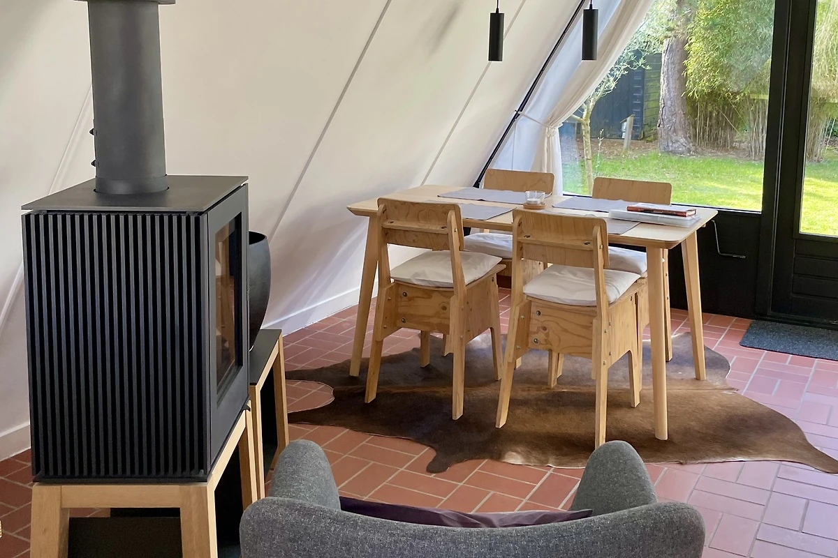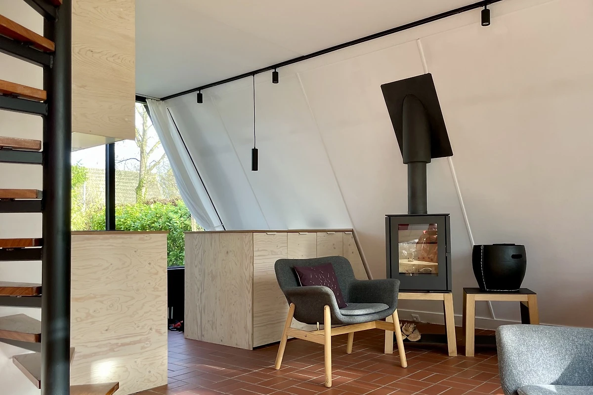 Wir haben das A-House 2025 renoviert , eine komplett neue Küche und einen wunderschönen Design Holzofen eingebaut
