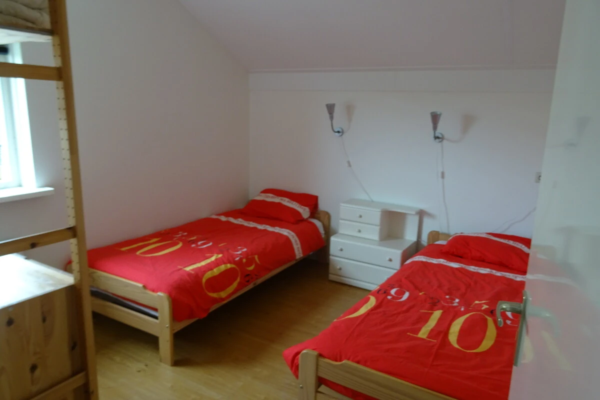 Das 1. Obergeschoss besteht aus: 1 Schlafzimmer mit 2 Einzelbetten und einem Elternschlafzimmer mit einem Doppelbett. Auf dieser Etage befindet sich auch eine großzügige Dusche mit zweitem WC. Es gibt auch ein kleines Zimmer für ggf. ein Baby/Kleinkind. Kinderbett und Kinderstuhl sind vorhanden. Über eine feste Treppe gelangen Sie in das 2. Obergeschoss, wo sich eine weitere Schlafgelegenheit mit einem Doppelbett befindet.