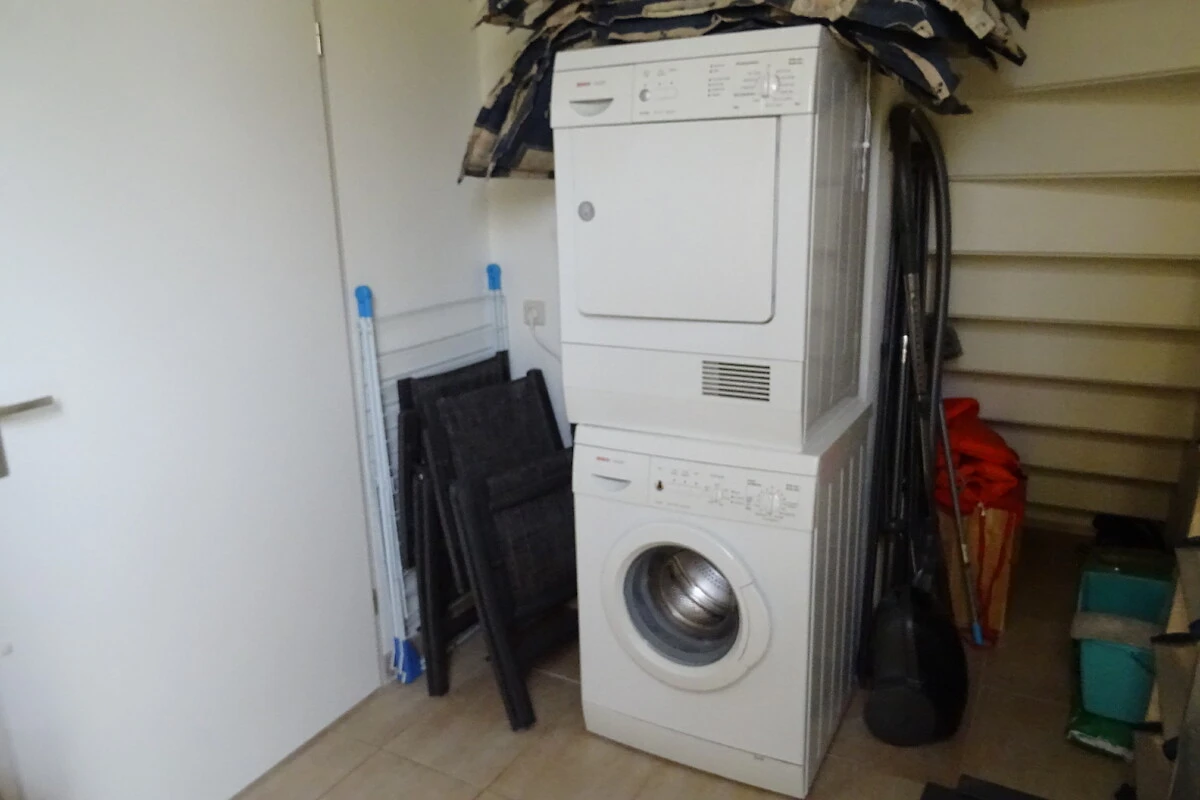 Aufteilung: Im Erdgeschoss befindet sich ein großzügiges Wohnzimmer mit einer modernen offenen Küche. Diese Küche ist mit moderner Ausstattung versehen, unter anderem mit einem Vier-Flammen-Gasherd und einem Wok-Brenner. Außerdem gibt es einen Kühlschrank, eine Kombi-Mikrowelle/Backofen, eine Spülmaschine, eine Kaffeemaschine, einen Wasserkocher, einen Toaster und einen Stabmixer. Vom Wohnbereich führen Flügeltüren auf die Terrasse. Weiterhin: Flur, Toilette und ein Abstellraum mit Waschmaschine und Trockner, Wäscheständer.
