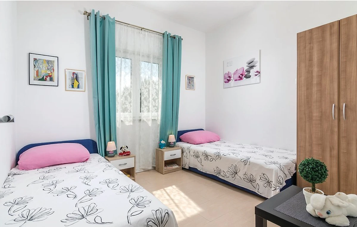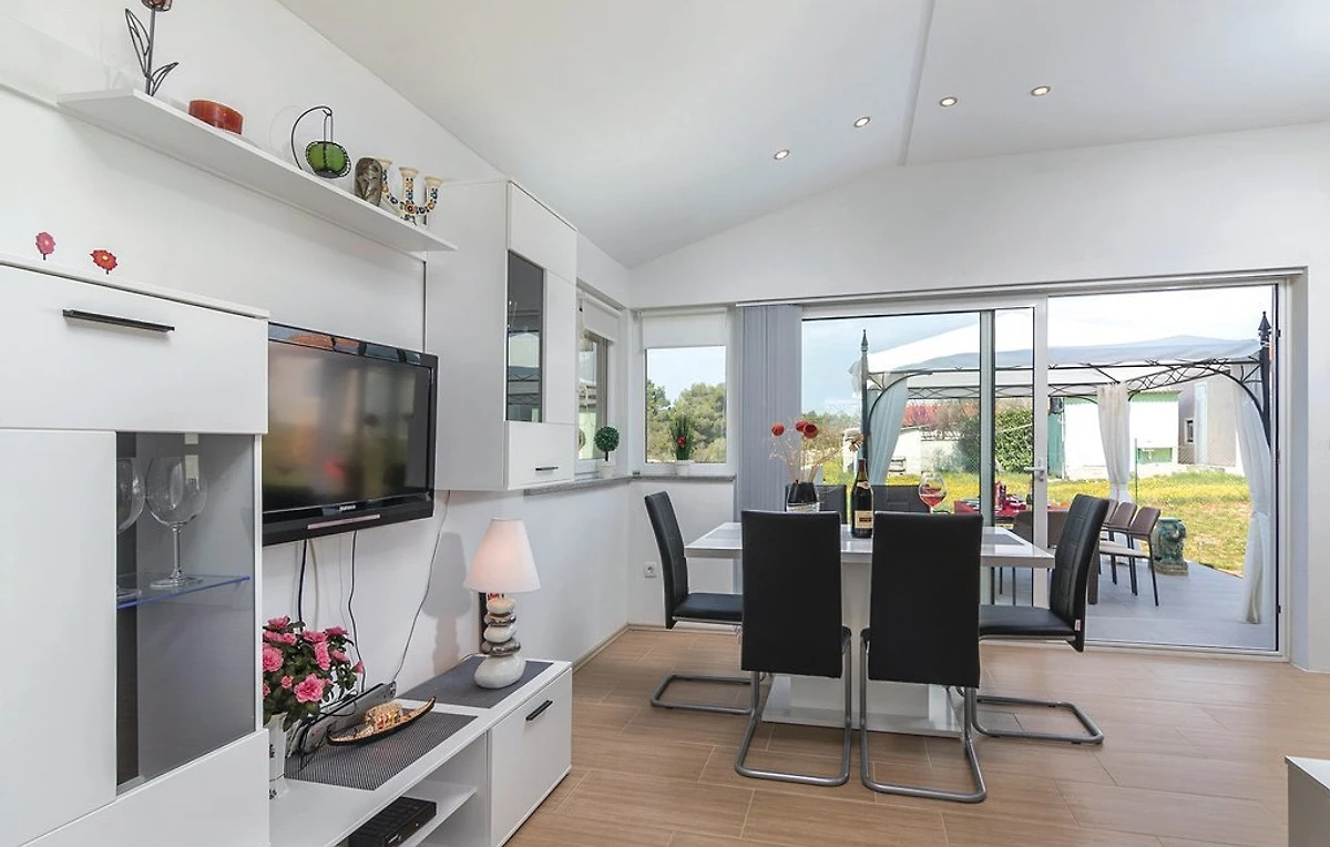 Im Haus befindet sich ein großer Wohn-/Essbereich mit geschmackvoll eingerichtetem Wohnzimmer, Esstisch, voll ausgestatteter Küche, Klimaanlage , Wi-Fi, Geschirrspüler, 2 Schlafzimmer (eines mit zwei Einzelbetten und ein zweites Schlafzimmer mit Doppelbett und eigenem Bad) sowie ein weiteres Bad mit Waschmaschine.