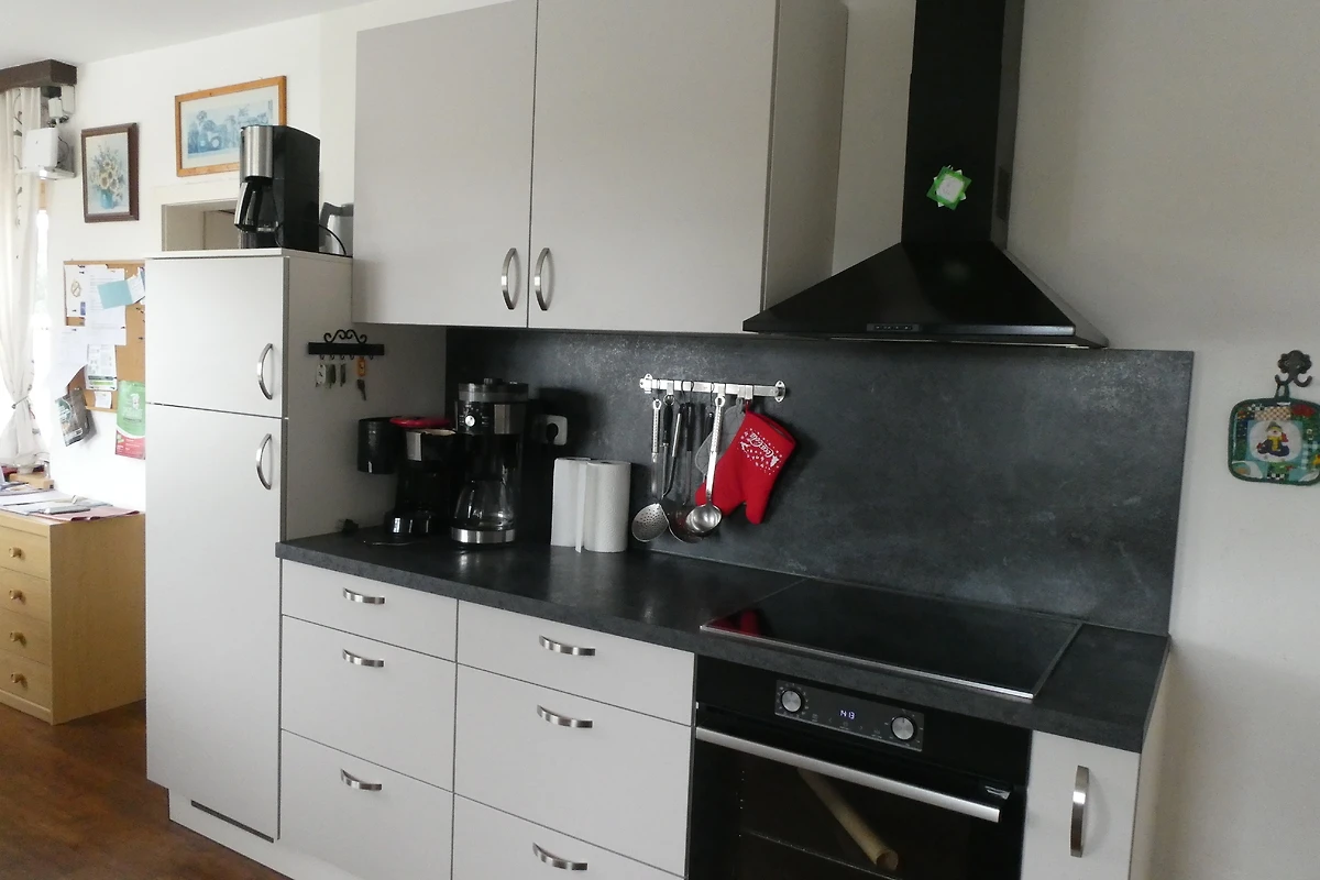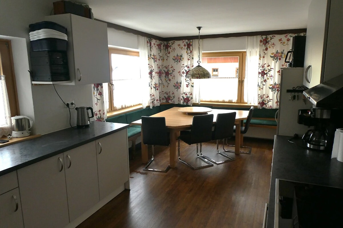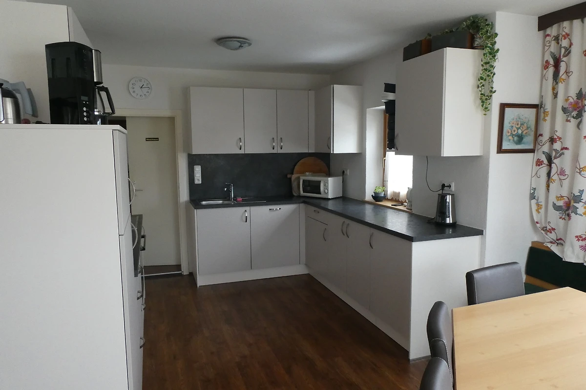 Erdgeschoss: große Küche mit Geschirrspüler, Mikro und Backofen mit Esstisch für 12-15 Personen.