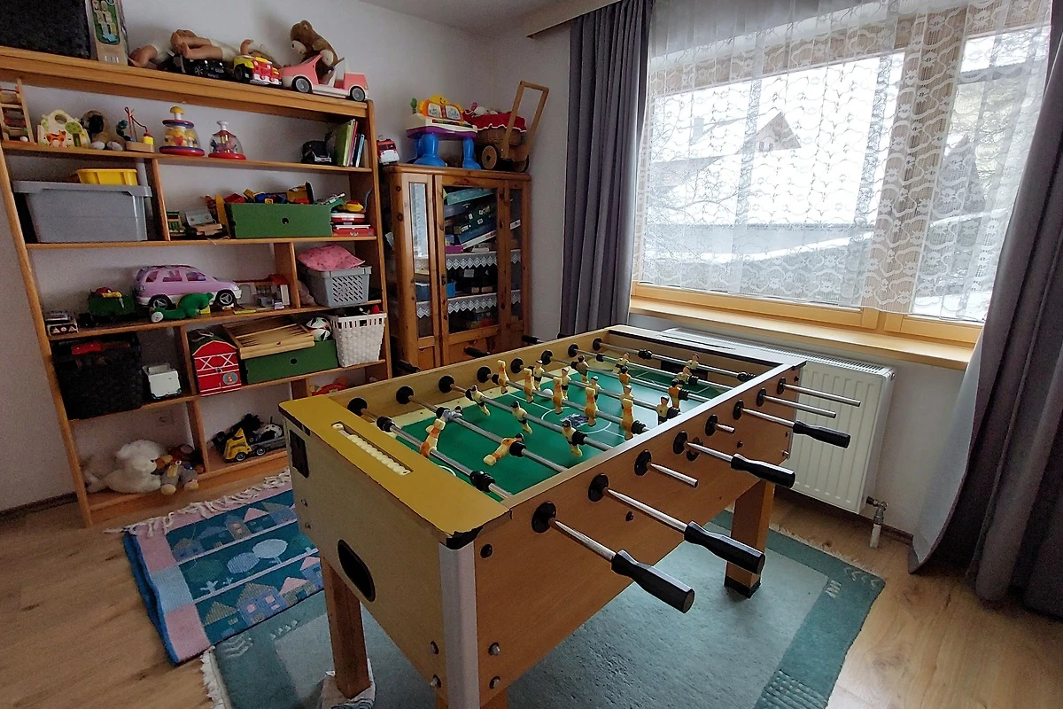 Neben dem Wohnzimmer liegt für unsere kleinen Gästen ein Kinderspielzimmer mit vielen Spielsachen wie Fußballtisch und vielen anderen Spielsachen ( bei Bedarf gibt es hier eine Schlafmöglichkeit für 1 Personen)