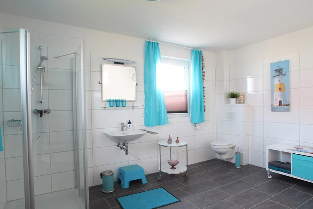 Für die kühleren Tage stehen ein Kamin und eine Sauna zur Verfügung. Auf jeder Etage befindet sich ein Duschbad, im EG mit Waschmaschine. Die offene Küche bietet alle modernen elektrischen Geräte, wie z.B. Geschirrspuler, Herd mit Backofen, Kühlschrank mit Gefrierteil, Mikrowelle usw. Die Terrasse ist 30 m² gross und mit Terrassenmöbel versehen. Im Wohnzimmer befinden sich Fernsehgerät, CD und DVD-Spieler. 2 Schlafzimmer sind mit Doppelbetten eingerichtet, in einem sogar mit massiven Kindergitterbett und ein Schlafzimmer hat 2 Einzelbetten, wobei unter einem Bett ein Rollbett ausgerollt werden kann, so dass in dem Schlafraum 3 Schlafplätze zur Verfügung stehen. Das Haus hat einen Abstellraum für Fahrräder usw. und KFZ-Stellplätze für 2 Autos. WLAN steht Ihnen kostenfrei zur Verfügung.Es erfolgt eine persönliche Schlüsselübergabe und Einweisung in die Wohnung sowie eine Vorortbetreuung durch unsere Mitarbeiter.