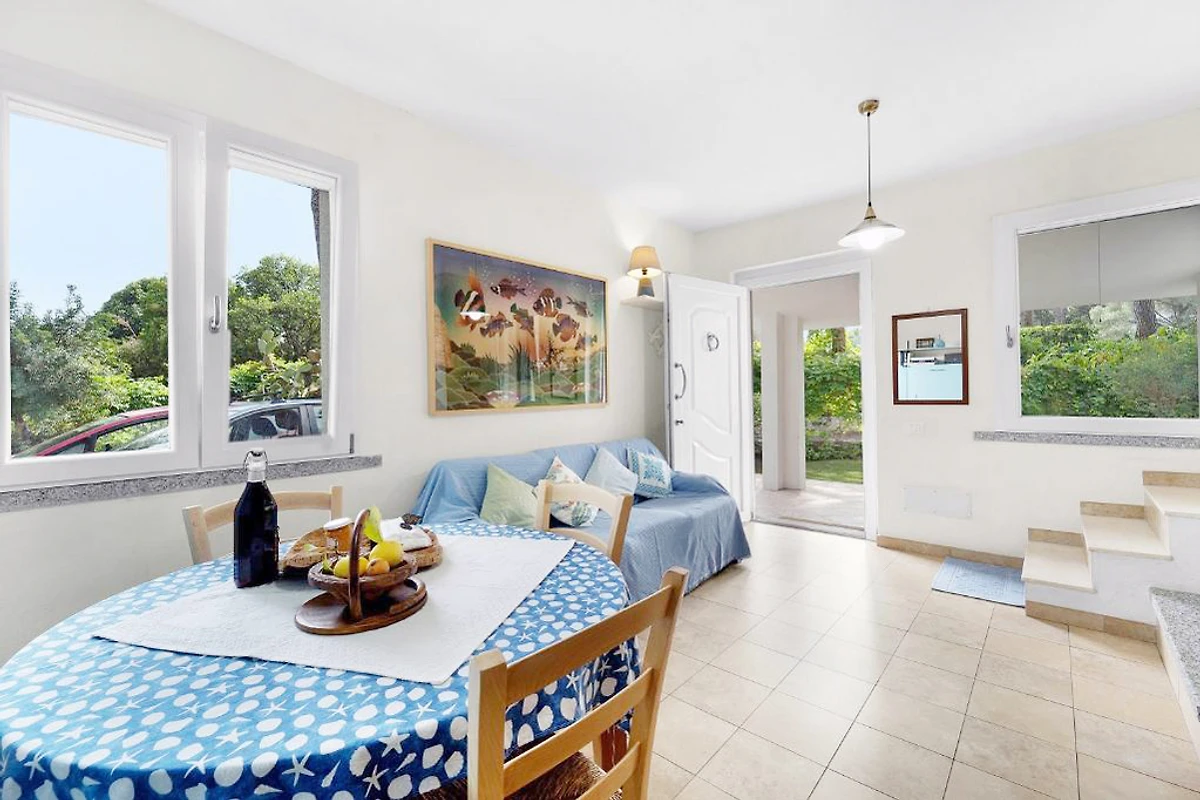 Fast direkt - nur wenige Gehminuten entfernt (ca. 300 m) - vom wunderschönen weißen Sandstrand und kristallklarem Meer von „Santa Margherita di PULA“ in dem fast nur von Ferienhäusern belegten Küstenabschnitt „Stella Marina“ - befindet sich dieses Ferienhaus umgeben von einem ca. 1500 qm großen abgeschlossenen mediterranen Gartengrundstück. Einkaufs- und Servicemöglichkeiten, Bars und Restaurants stehen im Umkreis von wenigen km zur Verfügung.