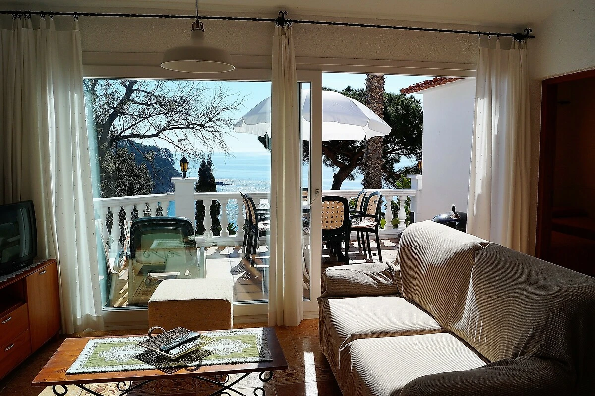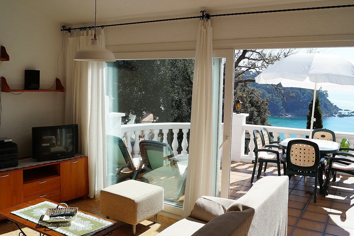 Haus mit herrlichem Meerblick über die Bucht von Canyelles. Wohn-/Essraum mit TV-Sat (Astra), 2 Schlafzimmer, 2 Duschen , Küche, Geschirrspüler. Terrasse.