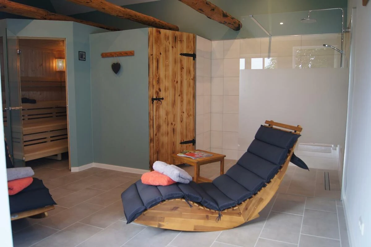 Am Kaminofen lässt es sich abends einfach herrlich abschalten . WLAN mit Glasfaser steht kostenlos zur Verfügung. Das Haus ist 2023 komplett saniert und verfügt über einen Wohn-Essbereich mit einer offenen vollaugestatteten Luxusküche. Die Heizung ist eine hochmoderne Wandheizung, die ein herrliches Raumklima schafft. Neben dem Vorraum mit klassischer Klönschnacktür, befindet sich das Bad mit Regendusche. Im oberen Teil des Ferienhauses sind 2 schöne Schlafzimmer mit Doppelbetten, in die man sich herrlich zurückziehen kann. Der Wellnessbereich für all unsere Gäste auf dem Hof lässt mit seiner finnischen Sauna und Infrarotkabine keine Wünsche offen. Auch ihr E-Auto hat eine schnelle Ladestation.