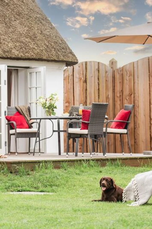 Die idyllische Lage dieser schönen Reetdachkate besticht. In der Allee zum Gut Priesholz zwischen Schlei und Ostsee bietet Sie Ihnen Erholung pur. Der grosse eingezäunte Garten lädt zum Grillen ein, oder Sie geniessen die Sonne auf den Liegen oder im Strandkorb.
