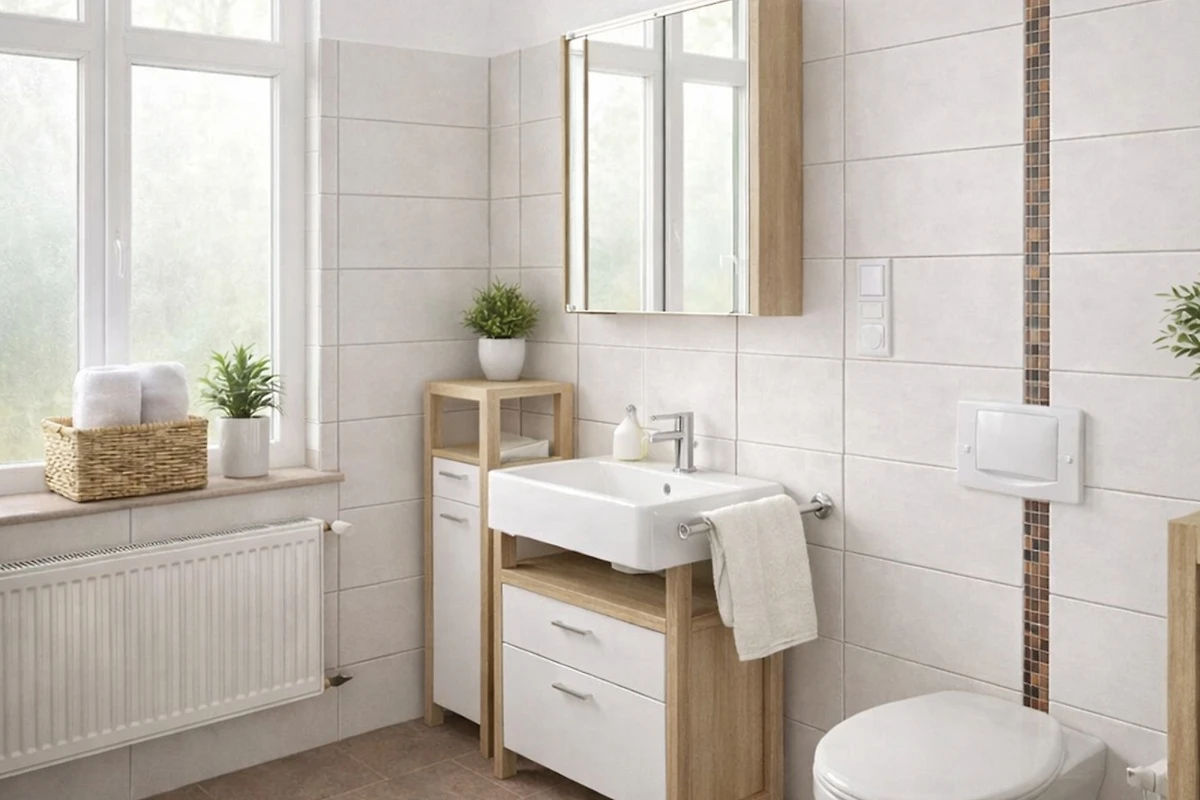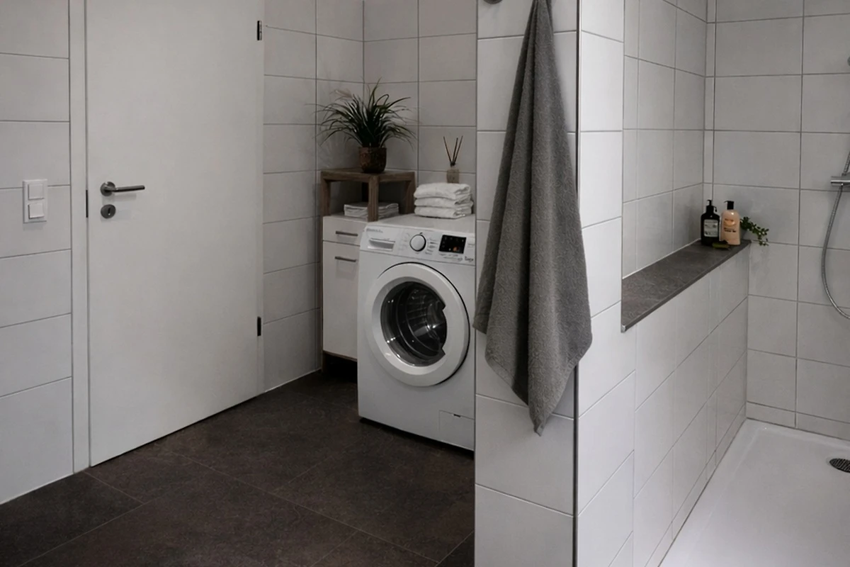 Das moderne Badezimmer ist mit einer Dusche 140x90 ausgestattet.