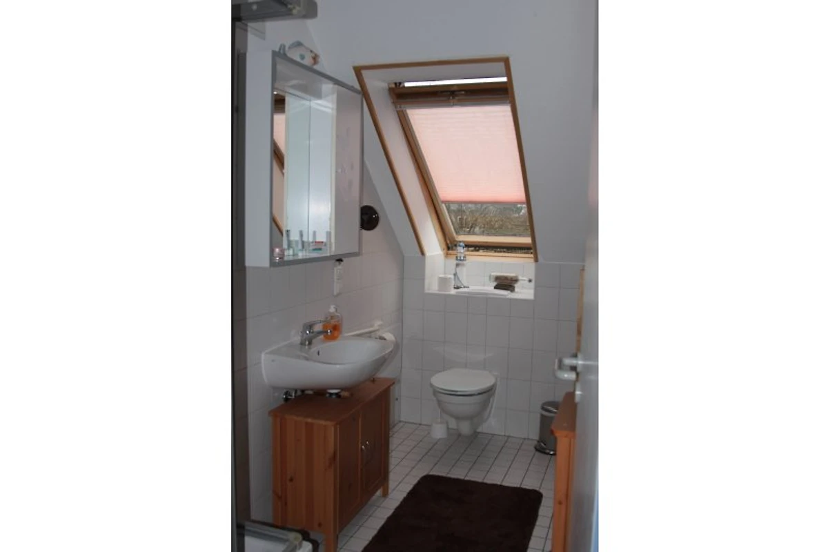 Im geräumigen Bad finden Sie Toilette, Dusche,Beistellschrank,Spiegelschrank, Handtuchhalter mit Heizfunktion und einen Fön vor.