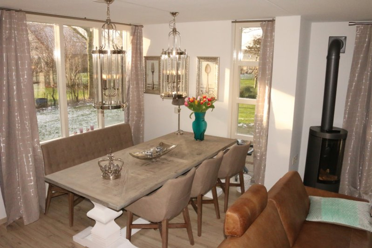 Es ist gemütlich, komfortabel und modern eingerichtet und verfügt im Wohnzimmer mit 2 Ledersitzgarnituren, über einen Kaminofen, eine Relaxliege und über einen 55" Samsung Curved Smart TV mit SAT-Anschluss und niederländischen Sendern. Mit der Samsung Heimkinoanlage genießen Sie einen natürlichen Virtual Surround Sound mit Iphone-Docking Station, wo Sie DVD`s oder Blurays sehen können oder aber über Apple TV sich Filme anschauen können.