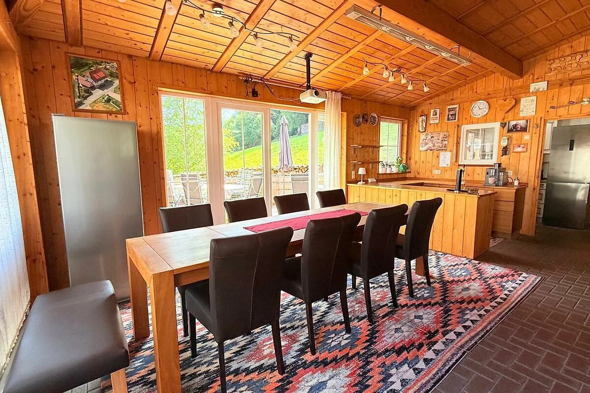 In einer ruhigen Waldrandlage an Wildbächen im Wanderparadies für Mensch & Hund im Luftkurort Heidelbeerdorf Enzklösterle auf 640 ü.d.M. im Nordschwarzwald erwartet Sie mit viel Liebe und teils Vollholzmöbel eingerichtetes Kinder - hundefreundliches Spa Ferienhaus mit zwei Infrarot-Sauna , vier-fünf Schlafzimmer, drei Badezimmer, das alle Annehmlichkeiten für einen erholsamen Urlaub bietet. Mit etwa 195qm Wohnfläche auf drei Ebenen unterteilt und mit 250 qm eingezäunten Gartenbereiche