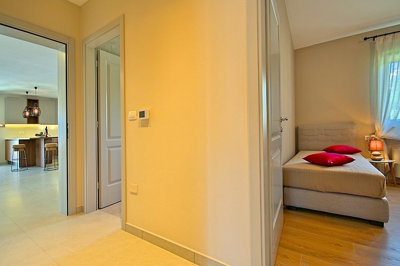 Fewo Felix, 75 m2 mit 2 Schlafzimmer,Wohnzimmer, für 2-5 Pers. free Wlan,2 Klimaanlage,beheizter Pool, Grill,Garten,Parkplatz, nur 5 Min/Auto zum Strand und Zentrum Porec