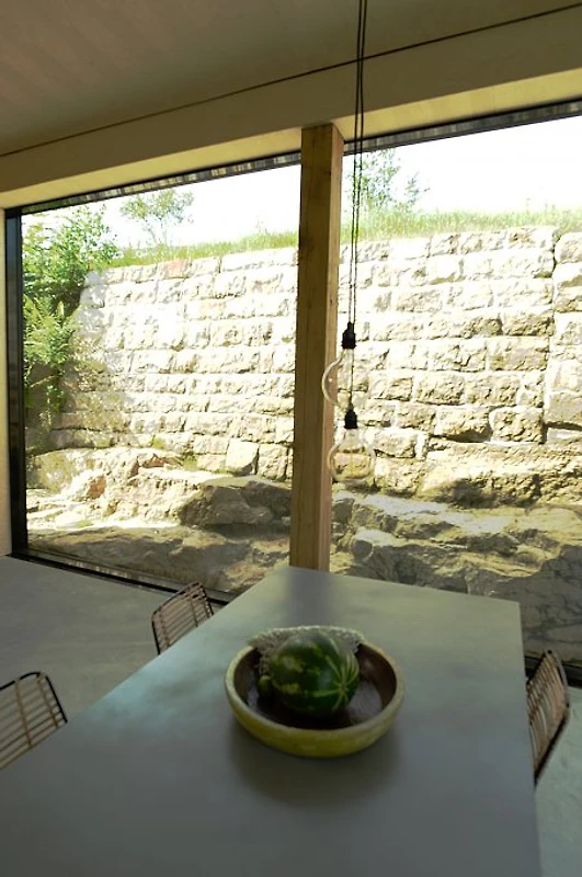 Zw. Waldrand und Wiesen gelegen ist es, durch eine 3-seitige Vollverglasung, lichtdurchflutet und hat einen freien Blick in die Natur.