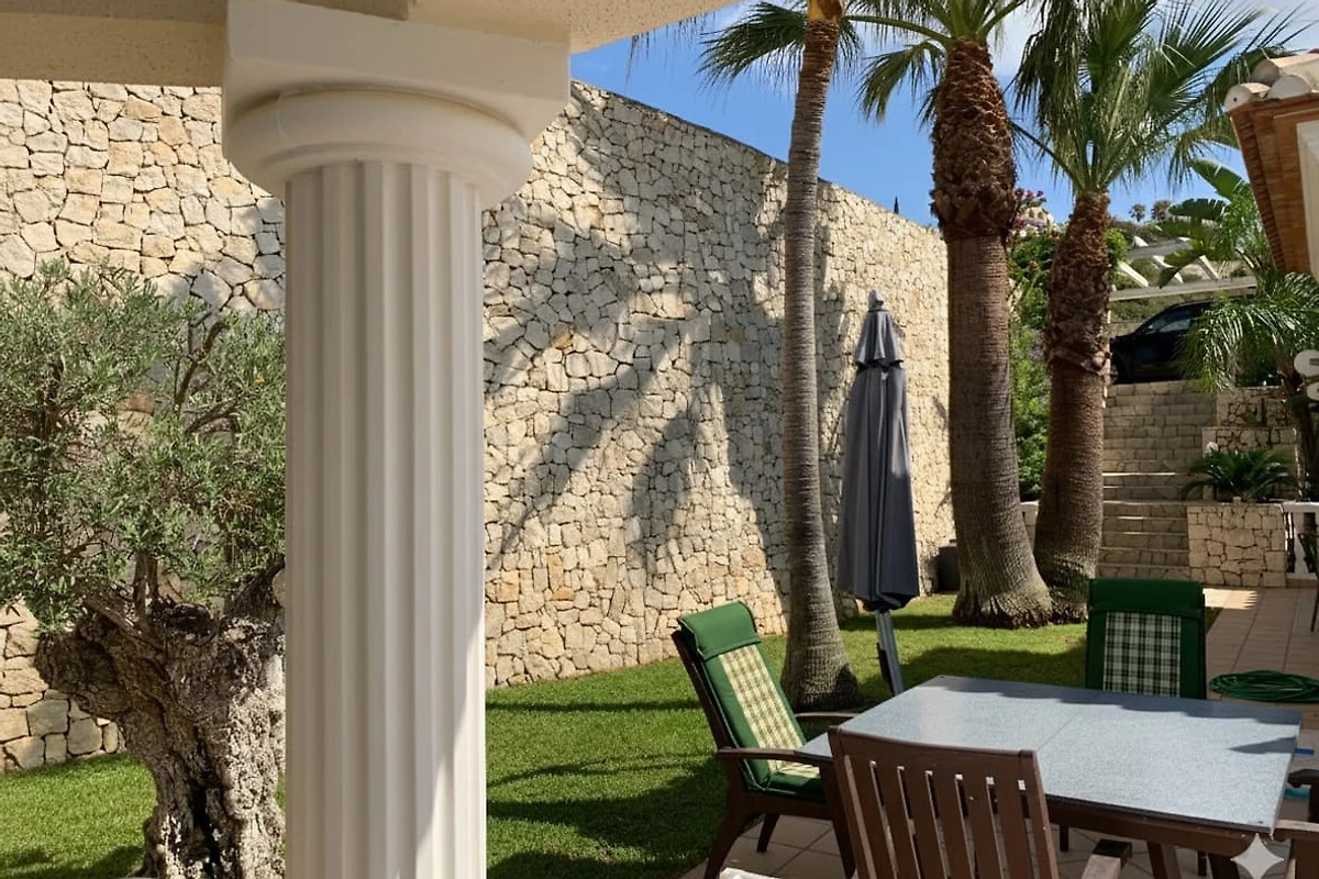 Hier bietet sich Ihnen ein gepflegter, mediterran angelegter Garten mit atemberaubendem Blick über Denia bis hin zum Meer.