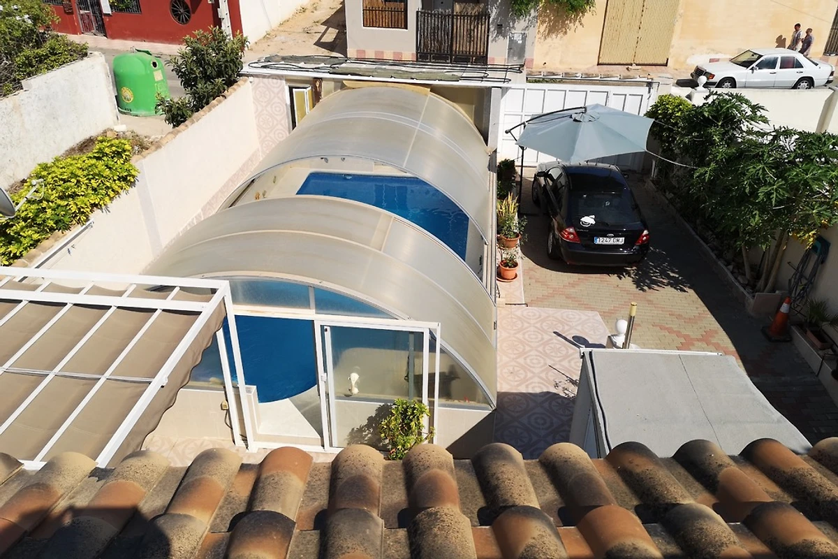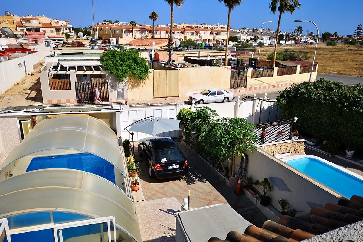 El Chaparral ein Vorort von Torrevieja in 3 KM Entfernung. Wohngebiet, zwischen 2 Salzseen. Strandpromenade von Torrevieja ist 3 KM entfernt, mit dem Bus sehr gut zu erreichen, Bushaltestelle in 200 m entfernt. Zum Natuschutzgebiet der Salzseen 250 M, 2 kleine Lebensmittelgeschäfte in 150 M Entfernung, Restaurants und Bistros in 50-100 M Entfernung,