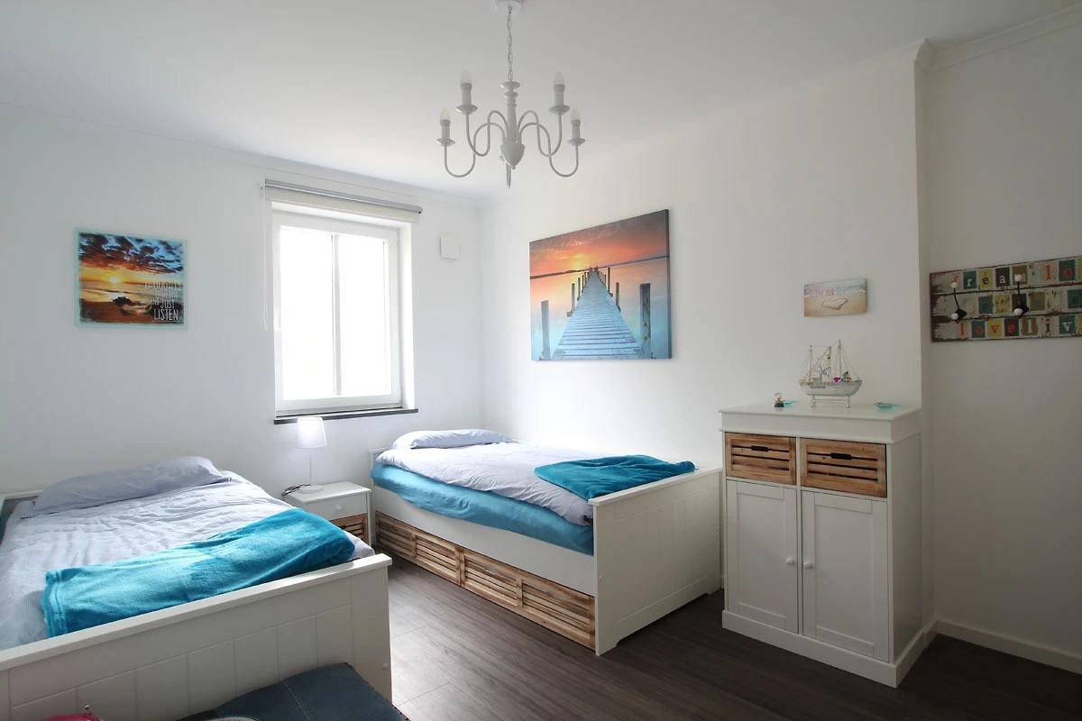 Diese wunderschöne Ferienwohnung mit Balkon befindet sich im 1. OG und verfügt über ein Schlafzimmer mit Doppelbett (Boxspringbett 180 x 200), über das Kinderzimmer mit 2 Einzelbetten und einem ausziehbaren Bett für die 3. Person. Das Wohnzimmer ist gemütlich eingerichtet und die offene Küche bietet einen Herd, Geschirrspüler, Gefrierschrank mit 3 Fächern und lässt keine Wünsche offen. Seit 2018 befinden sich im EG eine Münzwaschmaschine und ein Wäschetrockner.