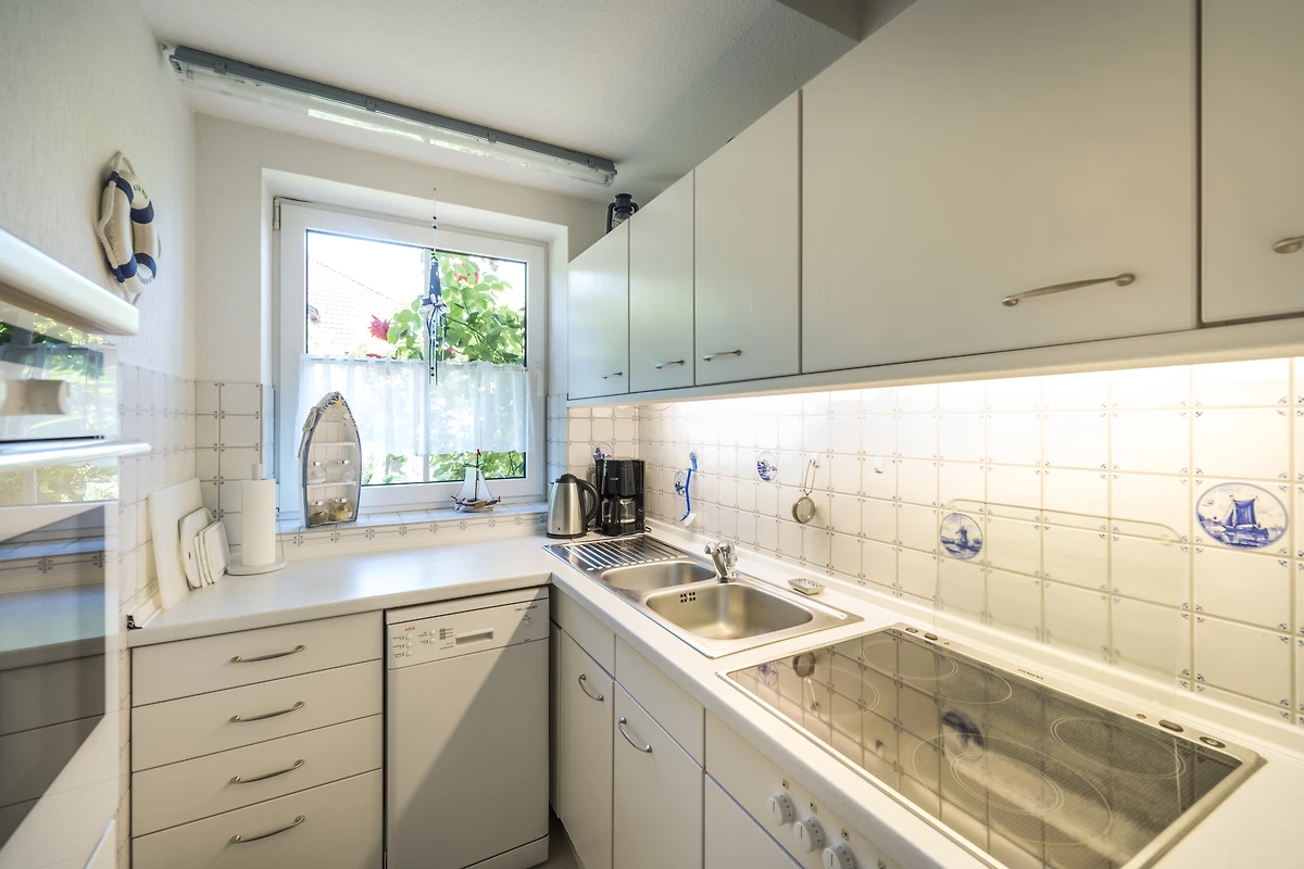 Voll ausgestattete Küche inkl. Spül- und Waschmaschine sowie Mikrowelle