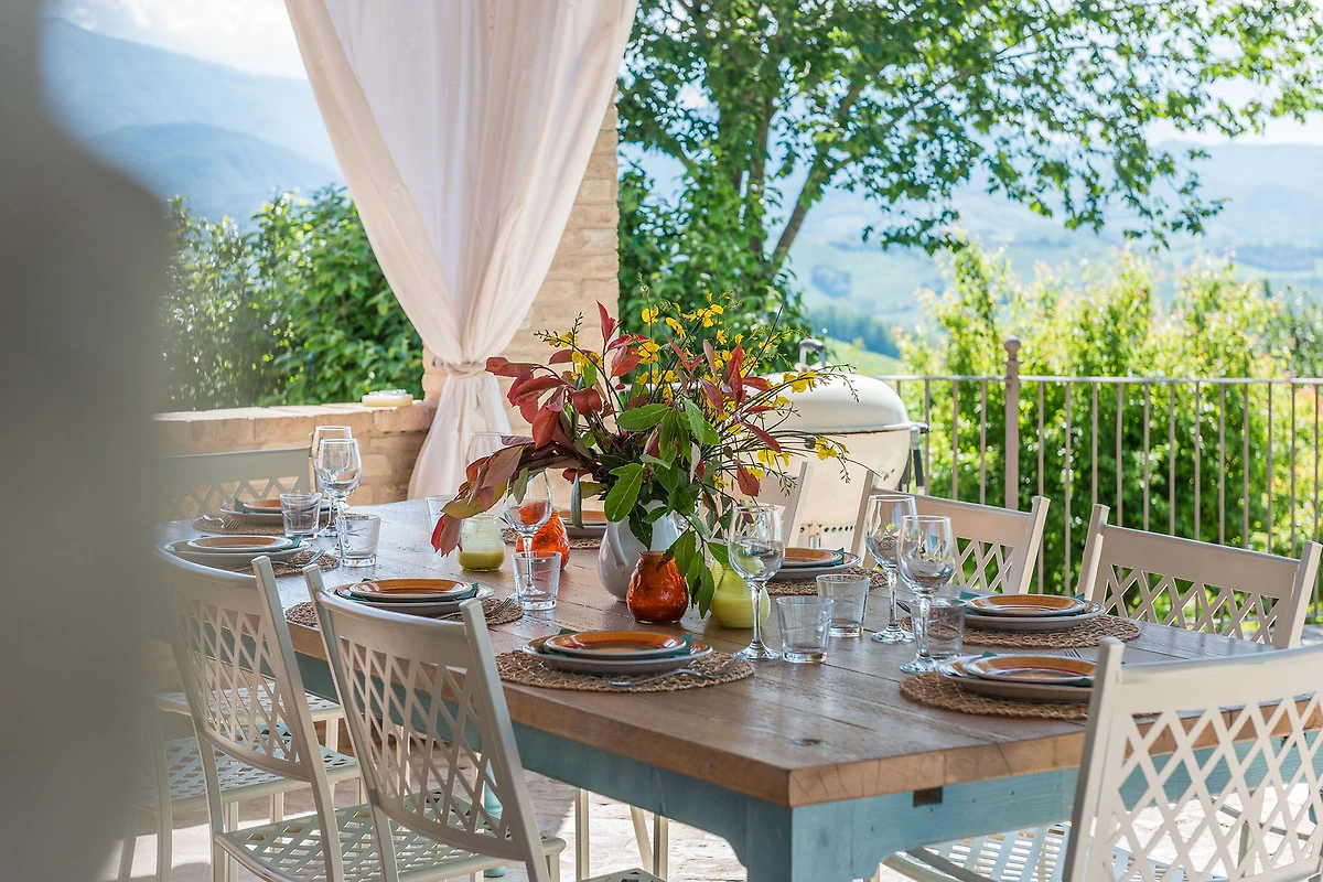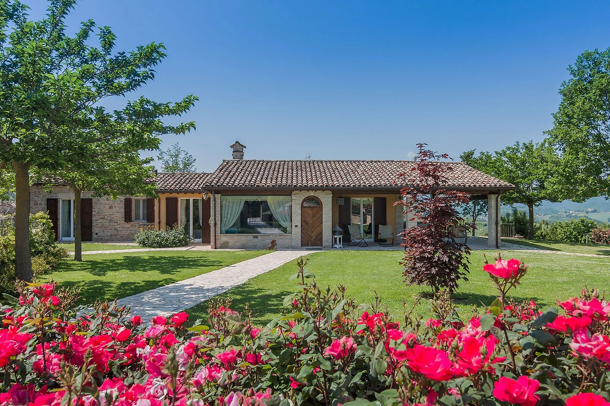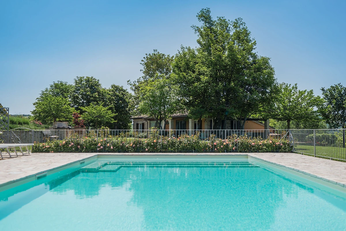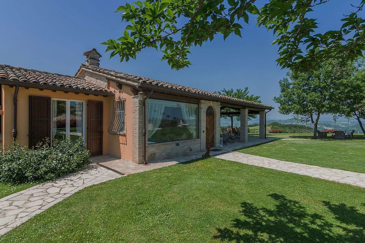 Casa Emanuela ist eine wunderschöne Privatvilla mit Pool in den Marken, die im komfortablen und funktionalen Stil renoviert wurde. Diese Unterkunft befindet sich in einer dominanten Lage mit außergewöhnlich freiem Blick auf die wunderschöne Landschaft der Marken und eignet sich perfekt für einen Urlaub mit der Familie oder mit Freunden im Geiste völliger Entspannung und Einfachheit, inmitten atemberaubender Landschaften und in der Nähe wichtiger historischer Zentren wie der Stadt von Urbino. Den Gästen stehen eine Außenküche mit Spüle und Grill sowie eine gut ausgestattete Veranda mit Tischen, Stühlen und Sofas für Abendessen im Freien zur Verfügung. Der große Garten wird durch einen Panorama-Salzwasserpool mit römischer Treppe abgerundet.