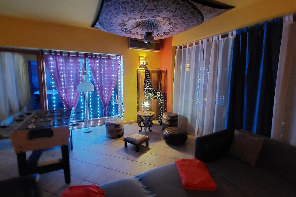 Das Haus ist zweistöckig. Im Haus befinden sich 4 Schlafzimmer, 3 Badezimmer, 3 Toiletten, 1 Wohnzimmer (mit Fernseher), Küche mit Eßbereich und Wellnessraum mit den 2 Pool,Jacuzzi und Fitnessgeräte. Die Grundfläche des Hauses ist 200 m2.