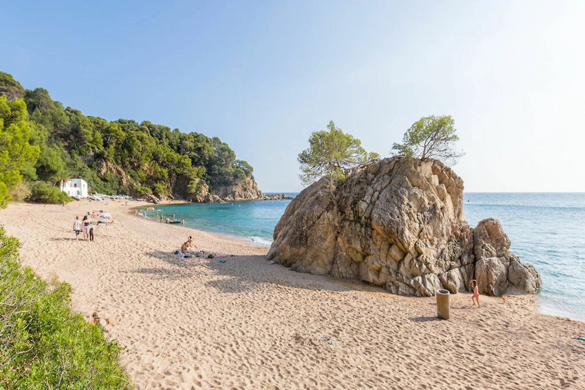Entdecken Sie die malerische Badebucht Cala Canyelles, idyllisch gelegen in der Nähe des beliebten Küstenortes Lloret de Mar.. Umrahmt von sanften Pinienhügeln bietet die Bucht kristallklares Wasser und einen feinen Sandstrand – perfekt für entspannte Tage unter der Sonne.