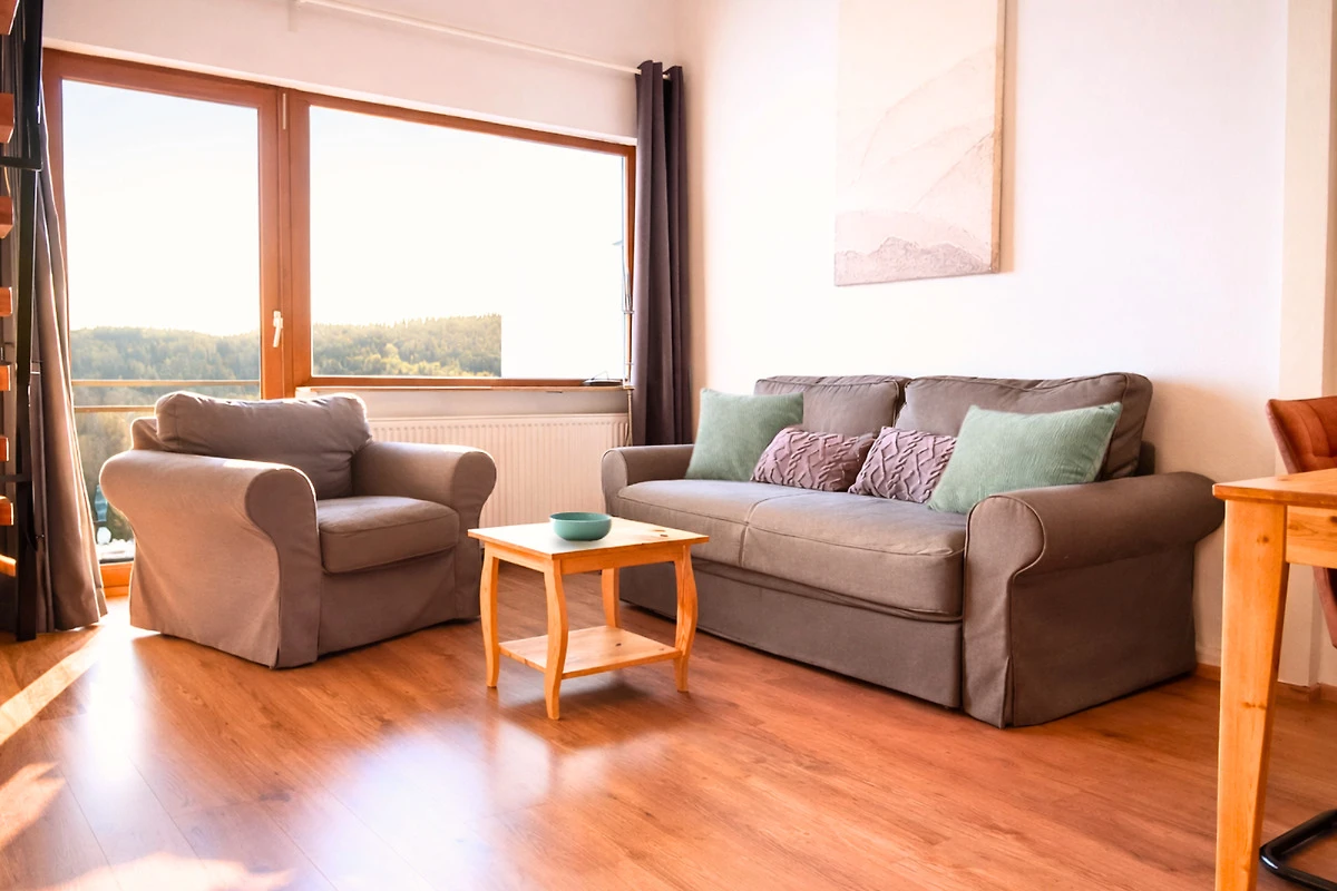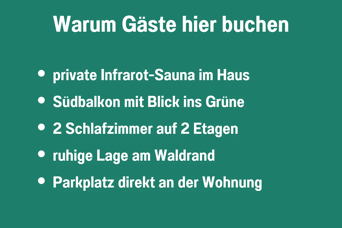 Ich bin Andrea - Die Wohnung begleitet mich schon seit meiner Kindheit. Jetzt darf sie auch für Sie ein besonderer Ort sein – wenn Sie Ruhe, Klarheit und Natur schätzen. Ich selbst wohne weiter entfernt, doch meine Gästebetreuerin ist in Ihrer Nähe: ruhig im Hintergrund und jederzeit ansprechbar. Die Wohnung liegt am Rand des Ortes, mit freiem Blick in die Weite – und in ein paar Minuten sind Sie im Wald. Alles ist für Ihre Auszeit vorbereitet: viel Licht, klare Räume, kleine Details mit Wirkung. Ich freue mich, wenn Sie sich hier einfach zurückziehen können.