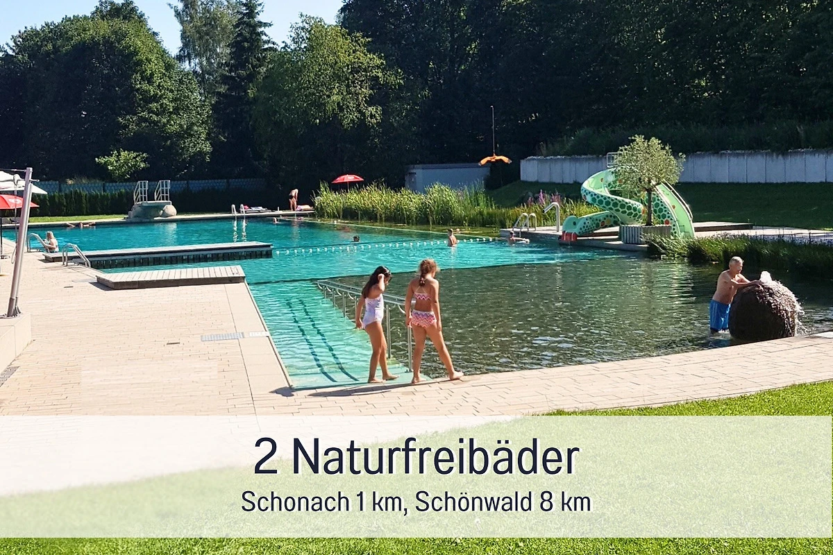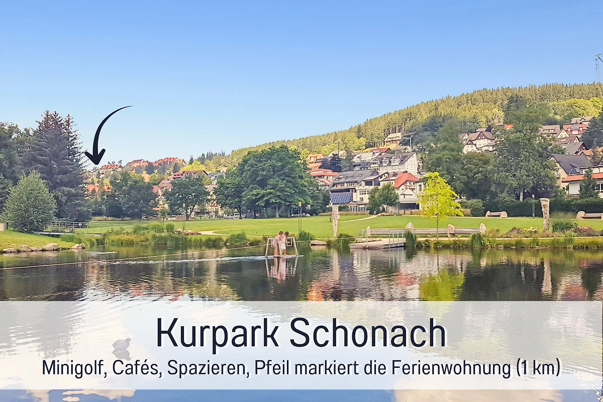 300 m zum Wald, 15 Minuten zu Fuß zum Kurpark mit Minigolf, Cafés und kleinen Geschäften.