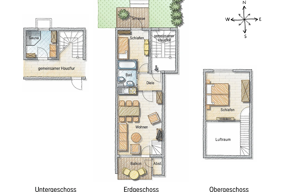 Ob zu zweit, mit Familie oder Freund:innen – die SONNENSEITE Schonach ist ein Rückzugsort für Menschen, die Klarheit, Licht und Natur schätzen. Die Wohnung erstreckt sich über drei Ebenen mit Südbalkon, privater Infrarotsauna und Weitblick über Schonach.