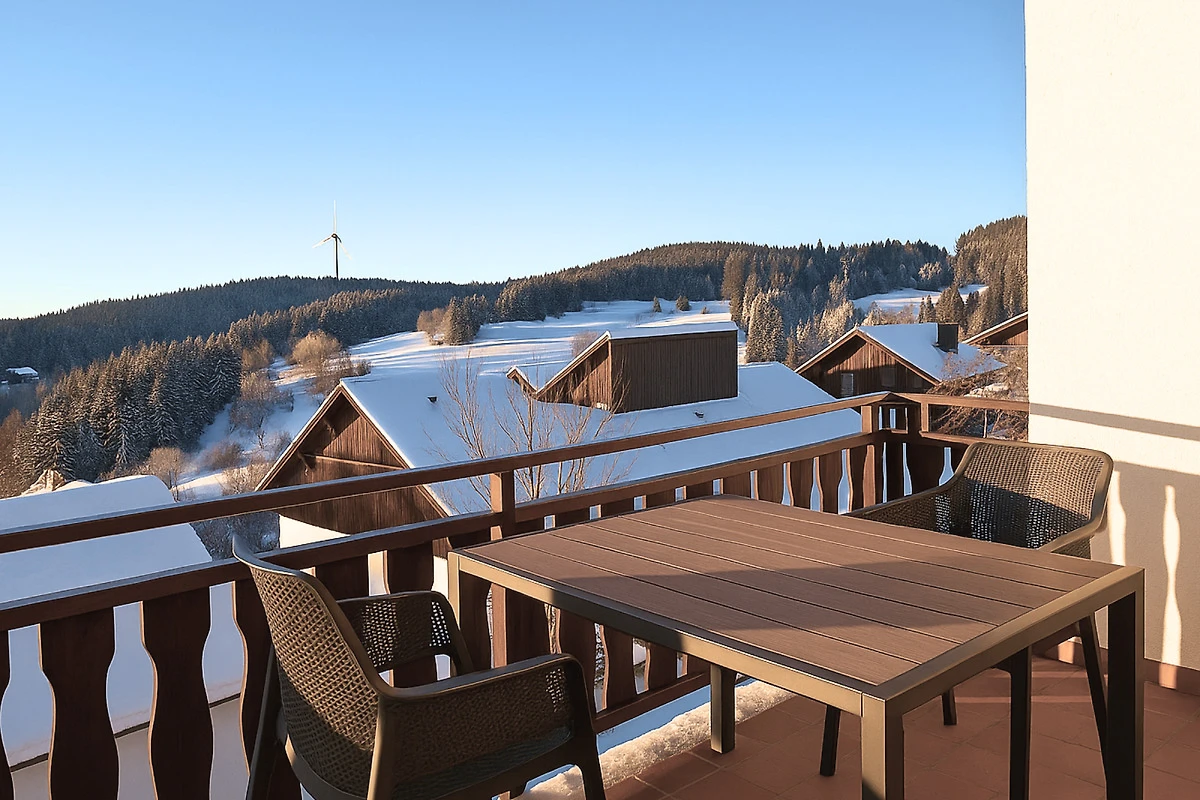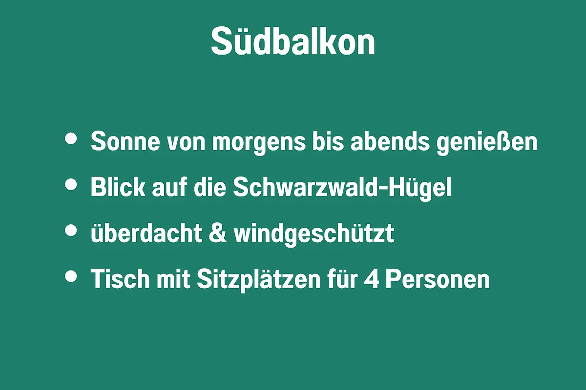 Südbalkon mit Tisch & 4 Stühlen, Sonne von morgens bis abends, freier Blick über Schonach.