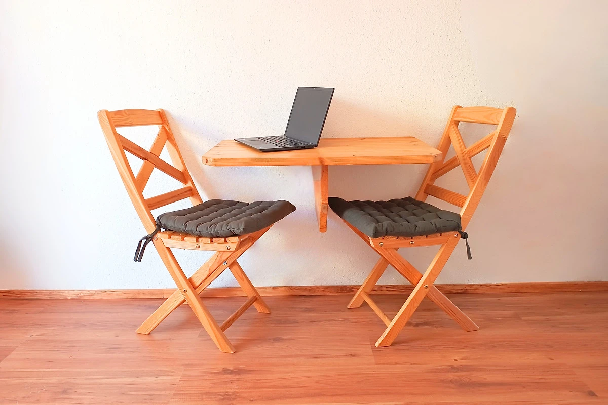 Esstisch für 4 Personen – auch zum Arbeiten mit Blick ins Grüne geeignet.