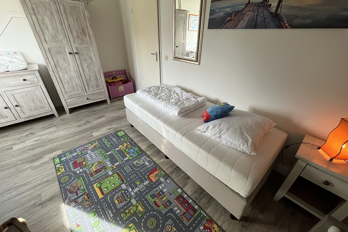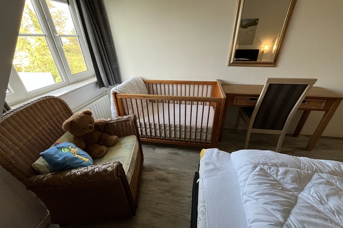 1 Doppelzimmer mit 1 Boxspringbett 90x200 cm plus 1 Kinderbett 140x70 cm , Kindermöbel, Wickelkommode, etc.