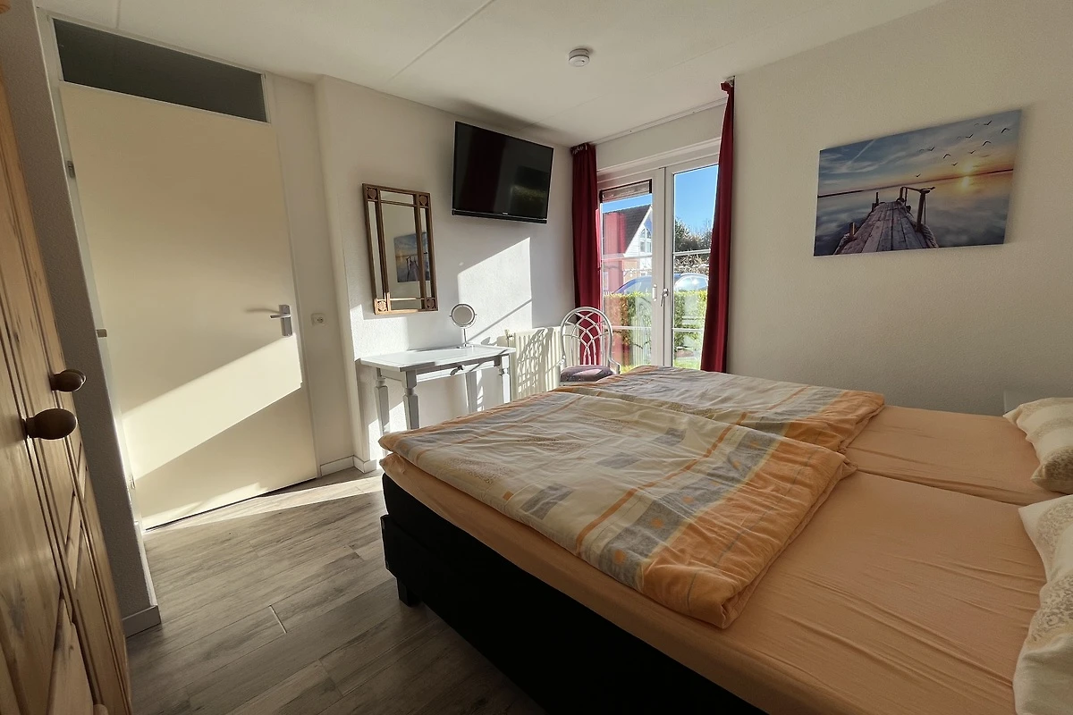 1 großes Doppelzimmer Boxspringbett 180x200 cm, mit SAT-TV und kl. Terrasse