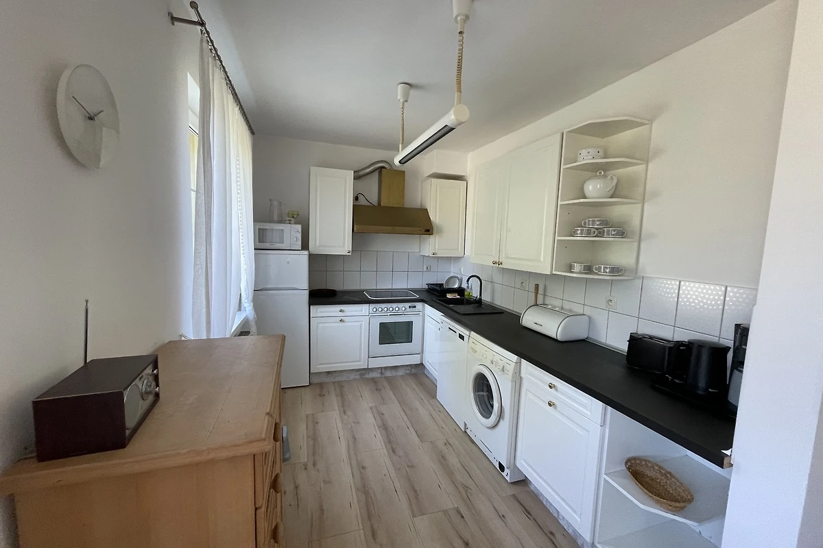 Die Küche ist mit den ganzen Geräten gut ausgestattet- Backofen, Mikrowelle, Toaster, Wasserkocher, Kaffeemaschine, Geschirrspüler und Waschmaschine. Zur Nutzung sollte alles, was man dazu braucht, von zu Hause mitgenommen werden (auch Backhandschuh und Backpapier). In den Küchenschränken findet man genug Geschirr, jedoch vermissten wir 6 große Gläser - vllt. kann das noch aufgestockt werden (es sind nur 4). Das Haus war gereinigt, jedoch fehlt mal zwischendurch eine Grundreinigung.