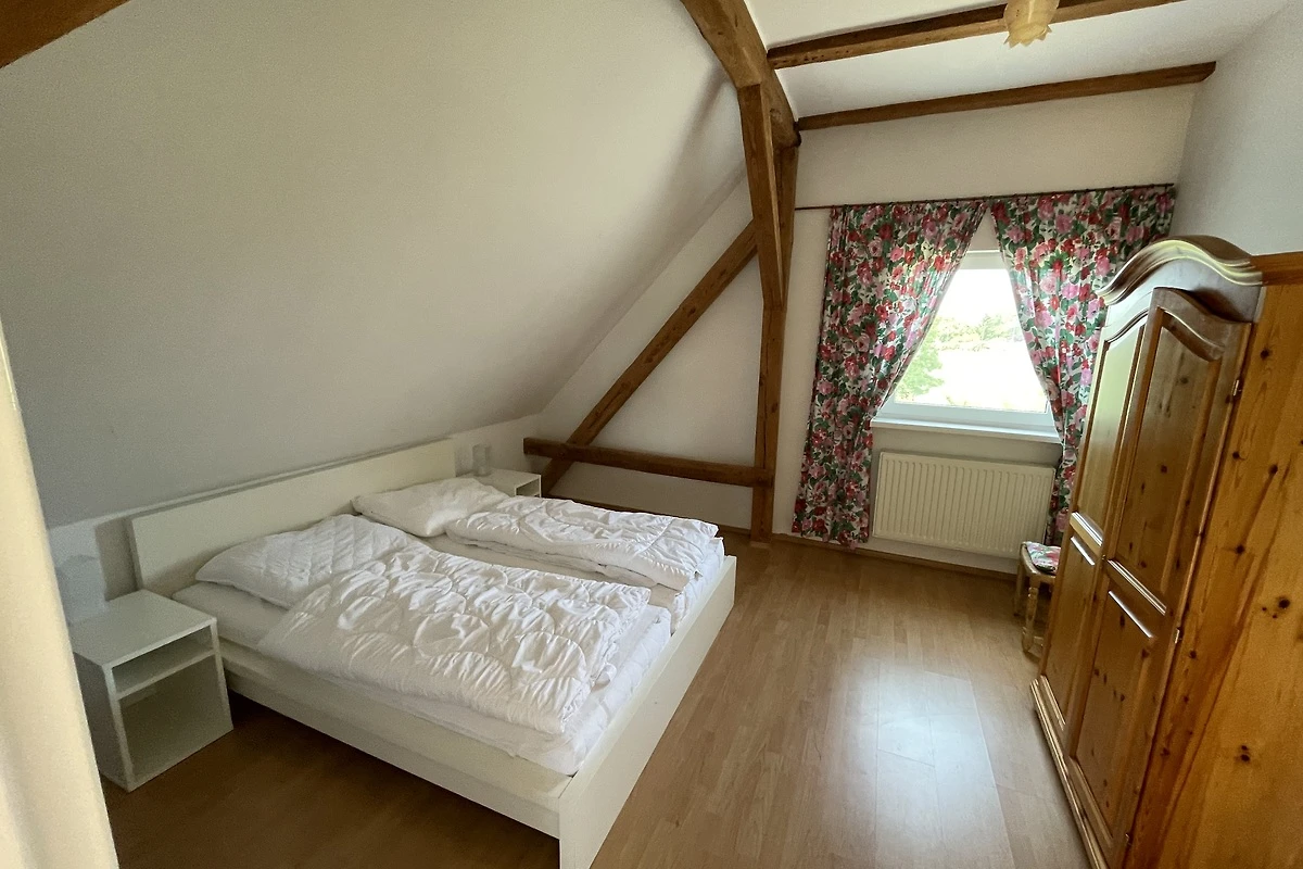 Wir, 2 Familien mit einem Kind (7Jahre) und einem erwachsenen Mädchen, hatten eine tolle Woche in dem Ferienhaus. Die Mädels waren oben im Spitzboden untergebracht, zu dem man über eine Raumspartreppe kam (also nichts für kleinere Kinder) und die 2 Elternpaare hatten je ein Schlafzimmer mit Doppelbett (mit Einzelmatratzen). Laut Beschreibung gibt es 3 Bäder, jedoch sind es nur 2, im 1.OG ein Vollbad mit Dusche, Wanne und WC und im EG ein Gästebad mit WC und Waschbecken. (WC- Papier sollte schon mal im Koffer sein)