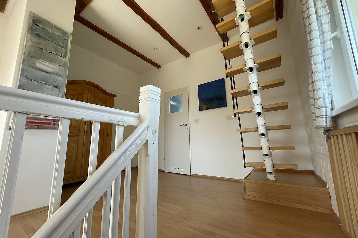 Unter dem Dach befindet sich ( nicht nur für Kinder ) die Räuberhöhle mit zwei Betten. Sie ist über eine Raumspartreppe zu erreichen.