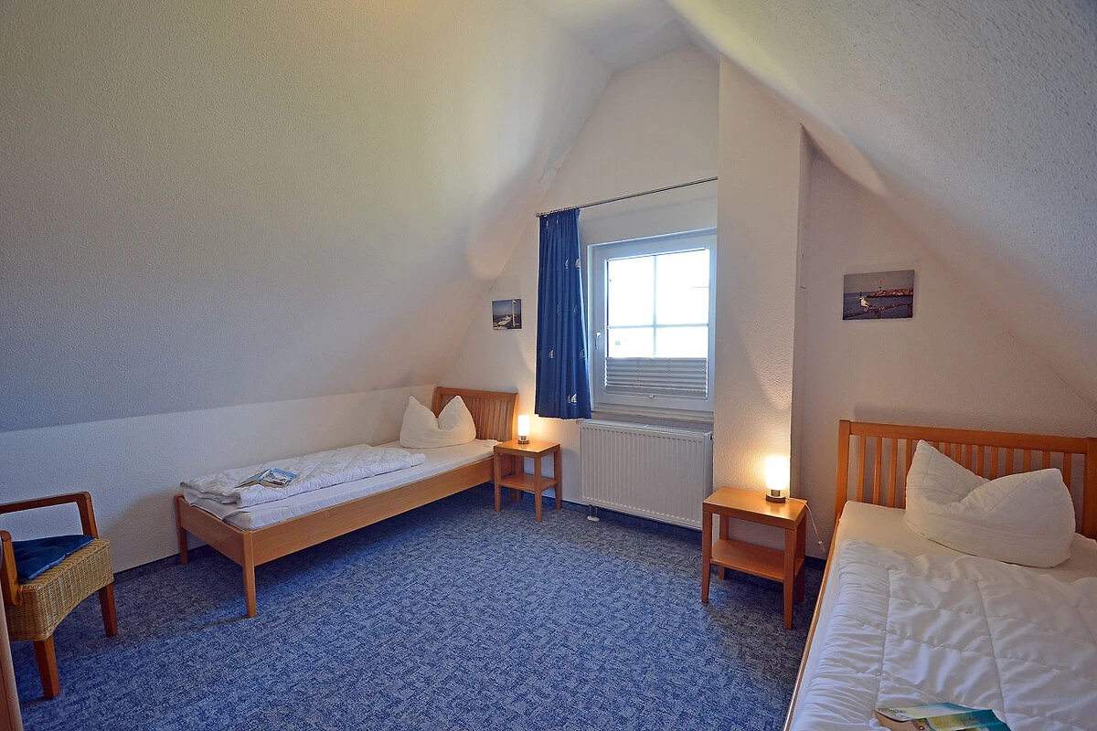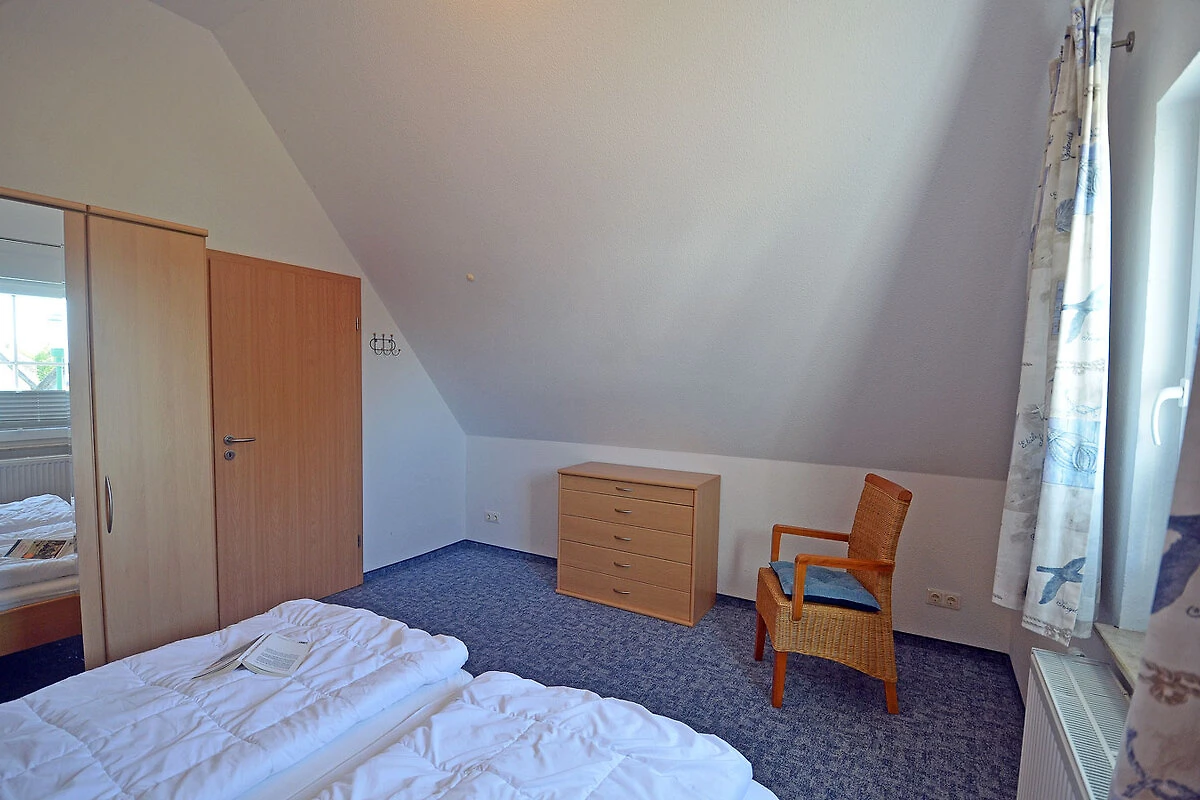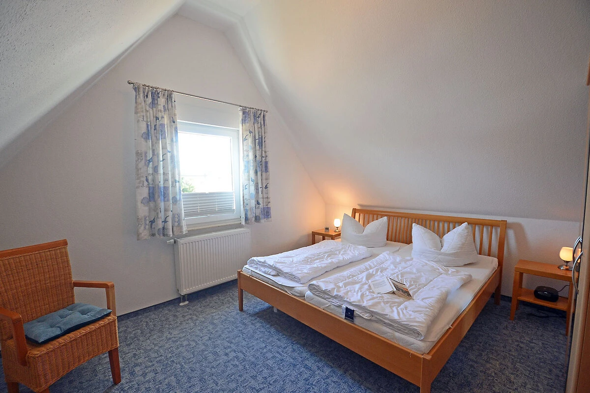 Obergeschoss: 1. Schlafzimmer mit Doppelbett und Kleiderschrank, 2. Schlafzimmer mit 2 Einzelbetten und Kleiderschrank, Bad mit Dusche und WC, Terrasse mit Gartenmöbeln