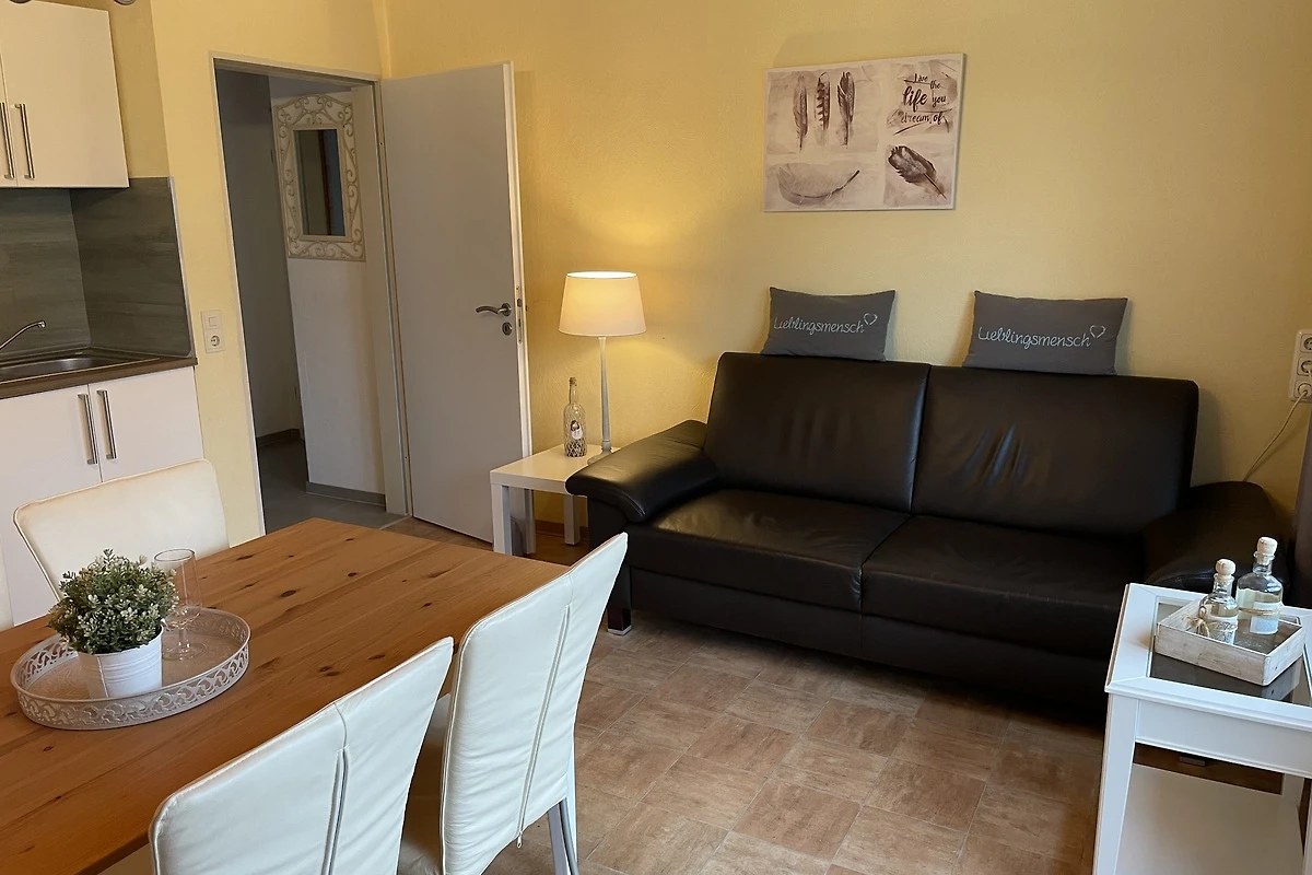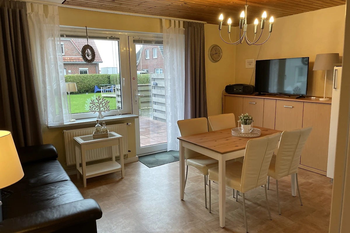 Unser Haus Nordsee gehört zur Ferienanlage Pro-Nordsee. Es liegt in ruhiger zentraler Lage gegenüber der Mühle von Carolinensiel in der Mühlenstr. 51. Wohnung 3 hat einen separaten Eingang im Erdgeschoss und verfügt über ein helles Wohnzimmer mit Blick in den gepflegten Garten. Im Wohnraum befindet sich eine gemütliche Sitzgruppe, ein Essplatz für 4 Personen und eine Küchenzeile mit Backofen und Spülmaschine. Zur Unterhaltung ist ein grosser 43" Led-TV und DVD-Player vorhanden. Das Schlafzimmer ist mit einem Doppelbett (180x200cm) ausgestattet. Eine weitere Person findet im Wohnraum in einem bequemen Schrankbett (90x200cm) einen Schlafplatz. Eine Waschmaschine ist im Badezimmer vorhanden.