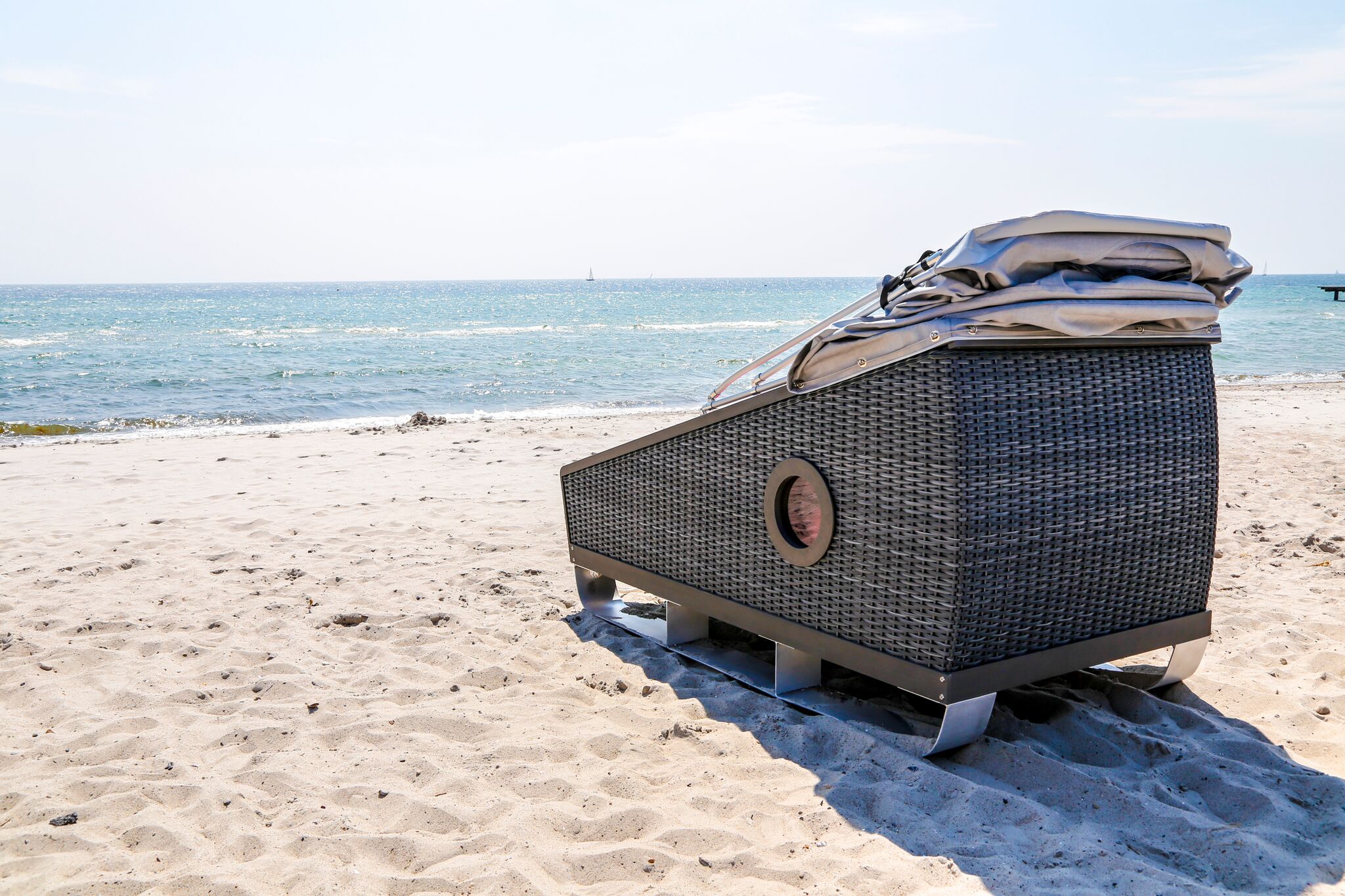 Wild am Strand schlafen ist verboten – und wird teuer. Doch in den Strandschlafkörben, die seit 2016 in Schleswig-Holstein aufgestellt wurden, kann man eine Nacht das Ferienhaus gegen ein Open-Air-Bett tauschen – in Weissenhäuser Strand, Eckernförde, Scharbeutz, Timmendorfer Strand/Niendorf, Travemünde und auf Fehmarn. 1,40 m breit, bietet der neue Strandschlafkorb genug Platz für zwei Erwachsene. Bei Wind oder Regen kann er durch eine wetterfeste, mit Fenstern versehene Persenning verschlossen werden.