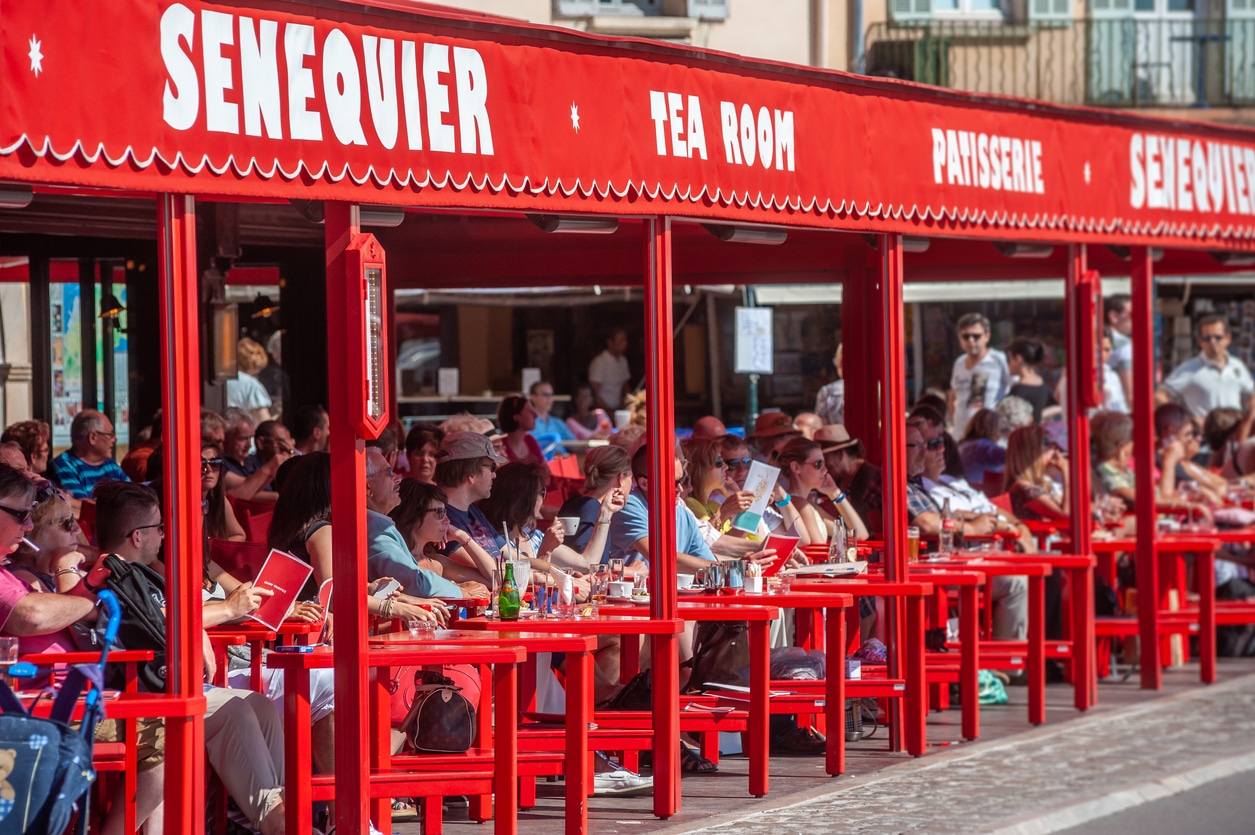Brigitte Bardot und Beyoncé: Das einstige Fischerdorf ist seit 50 Jahren der Treffpunkt des internationalen Jet-Sets. Im kleinen Hafenbecken drängen sich die Luxusjachten, an der Kaikante hat Le Sénéquier seine Tische und Stühle aufs Pflaster gestellt: knallrot und très VIP. Wie die Cocktails auf der Karte, zu denen kleine Knabbereien serviert werden. Teuer, trendy – und der beliebteste Ort, um dem Treiben zuzusehen. Das Motto von früh bis spät: sehen und gesehen werden – im Winter im beheizten Vorbau.