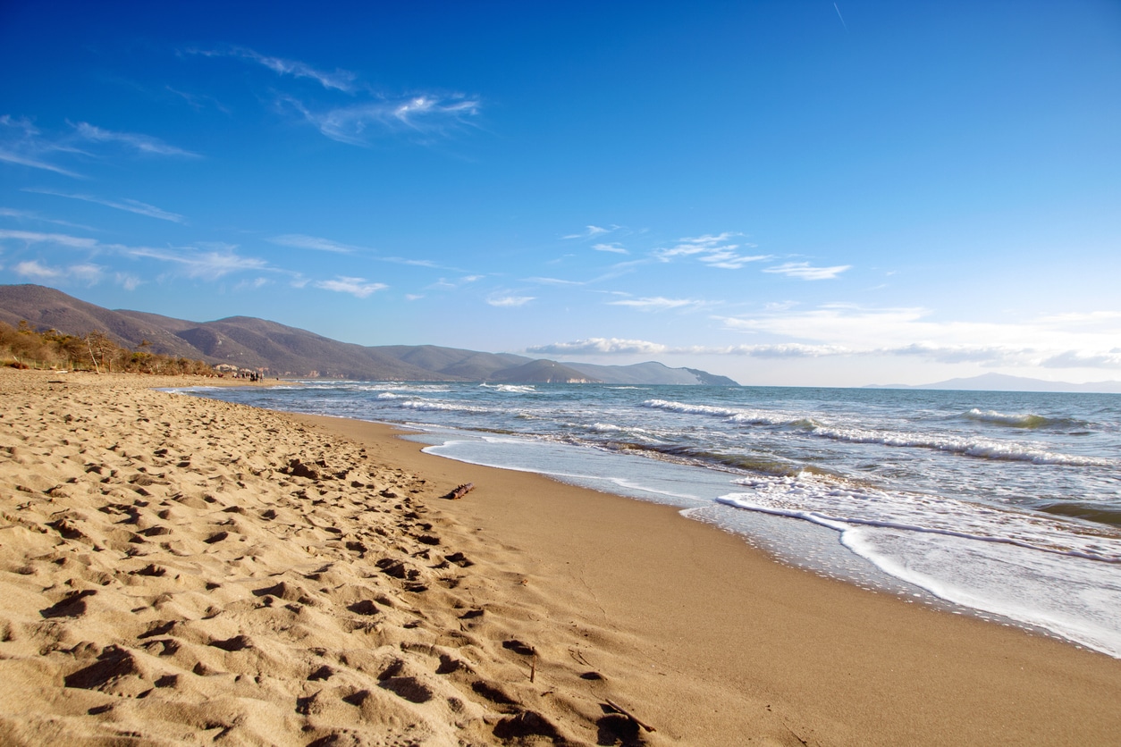 Einen wunderschönen Naturstrand finden Sie in Marina di Alberese im Naturreservat Parco Naturale della Maremma in der Provinz Grossetto. Der 15 km lange Sandstrand fällt flach ab ins Meer und ist naturbelassen – Äste und Algen, die angeschwemmt werden, bleiben dort liegen. Dafür ist der Strand nicht überlaufen.