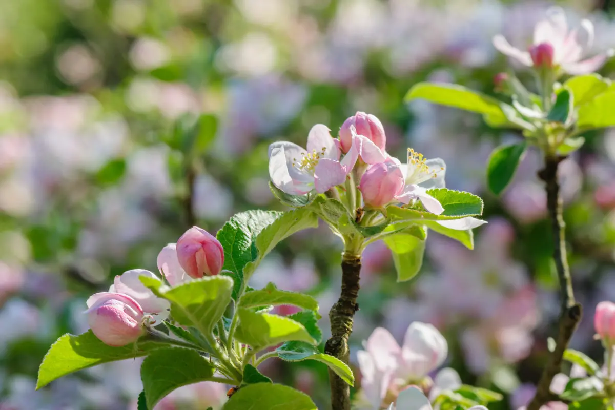 Zwischen Ende März und Anfang Mai tauchen die blühenden Apfelbäume zwischen Vinschgau und Eisacktal Südtirol in ein weiß-rosa Blütenmeer. Das Etschtal zwischen Meran und Bozen ist breit und flach und so strömt die warme Luft des Mittelmeers ungehindert hinein und bietet mit über 300 Sonnentagen pro Jahr beste Bedingungen für den Apfelanbau.