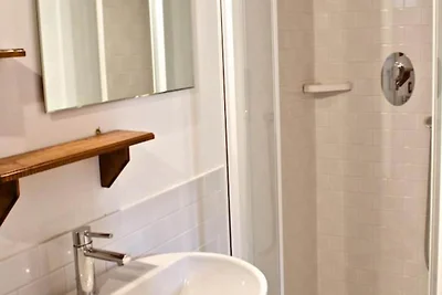In der 1. Etage: (offene Küche(Backofen), Wohn/Esszimmer(TV), Schlafzimmer(Doppelbett), Badezimmer(Dusche, Waschbecken, Toilette, Bidet))