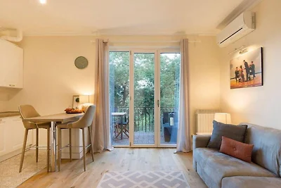 Modernes Apartment mit einem bezaubernden Seeblick und einer großen Terrasse, einem privaten eingezäunten Garten und einer Garage, 4 Schlafplätze, Klimaanlage, hundefreundlich.