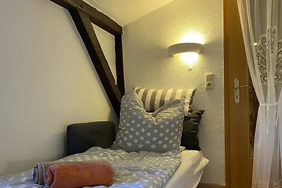 Unterkunft: 2- Raum- Ferienhaus im Garten eines gepflegten Einfamilienhaus auf 750m² komplett umzäunten Grundstück direkt am Waldrand.