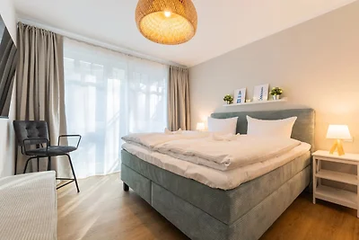Ostseebad Binz: moderne Fewo in der 2. Reihe zum Strand - mit inkludiertem Strandkorb am Strand. Mit WLAN, 2xTV, Balkon und Parkplatz. Sauna, Fitnessraum und Kicker im Haus.