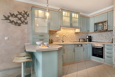Sehr großzügig geschnittene und sehr gepflegte Ferienwohnung mit Meerblick, Parkplatz am Haus und WLAN. Sauna im Haus.