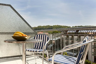 Binz: schöne Ferienwohnung mit Meerblick, Kamin und 2 Balkonen. Parkplatz und WLAN inklusive.