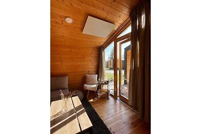 Wir bieten ein Blockbohlenhaus ( 55 m² mi Kamin, Wintergarten, Holzterrassen ) auf einem 900 m² voll eingezäunten Grundstück. Ideal für 2 Personen mit oder auch ohne Hund.